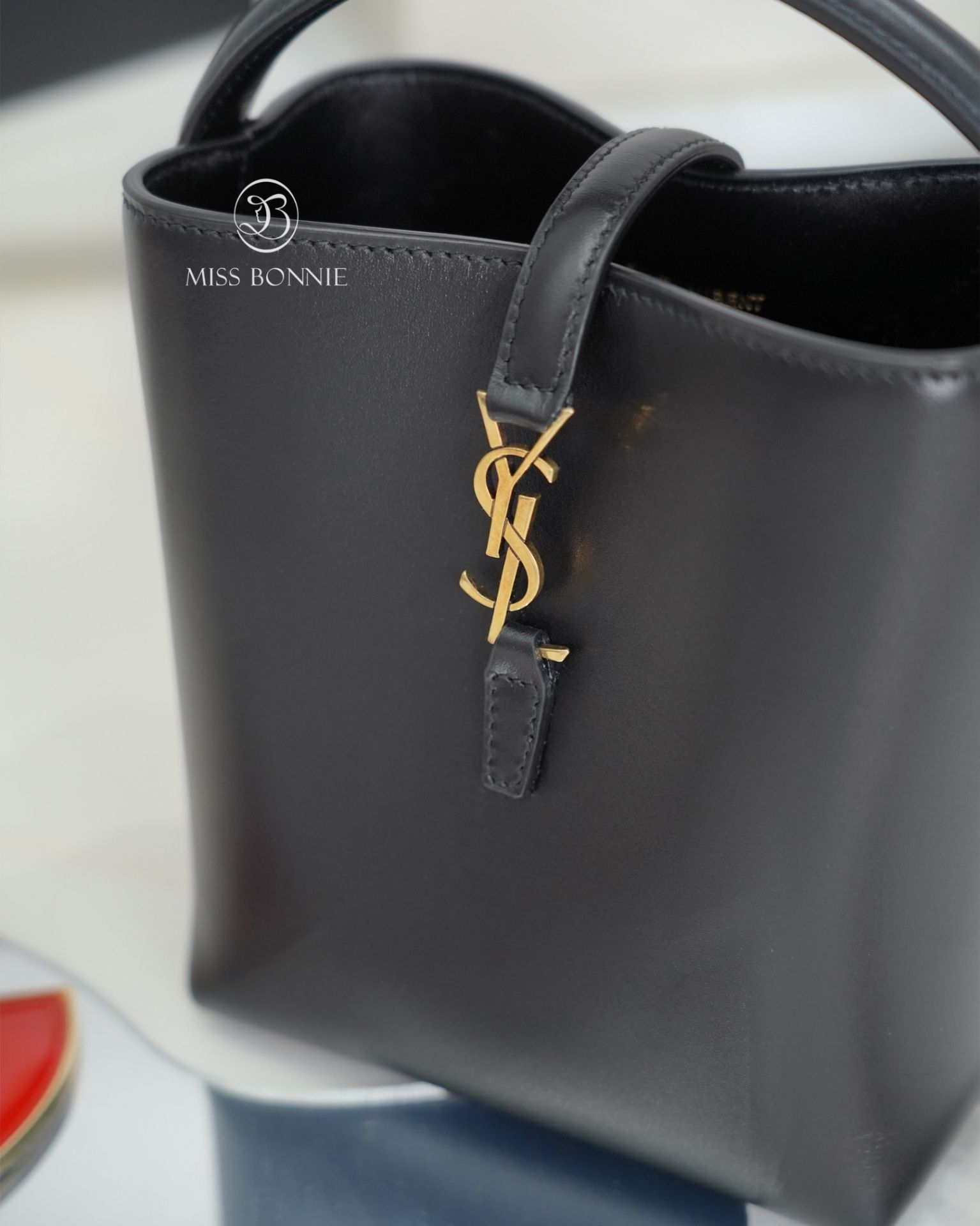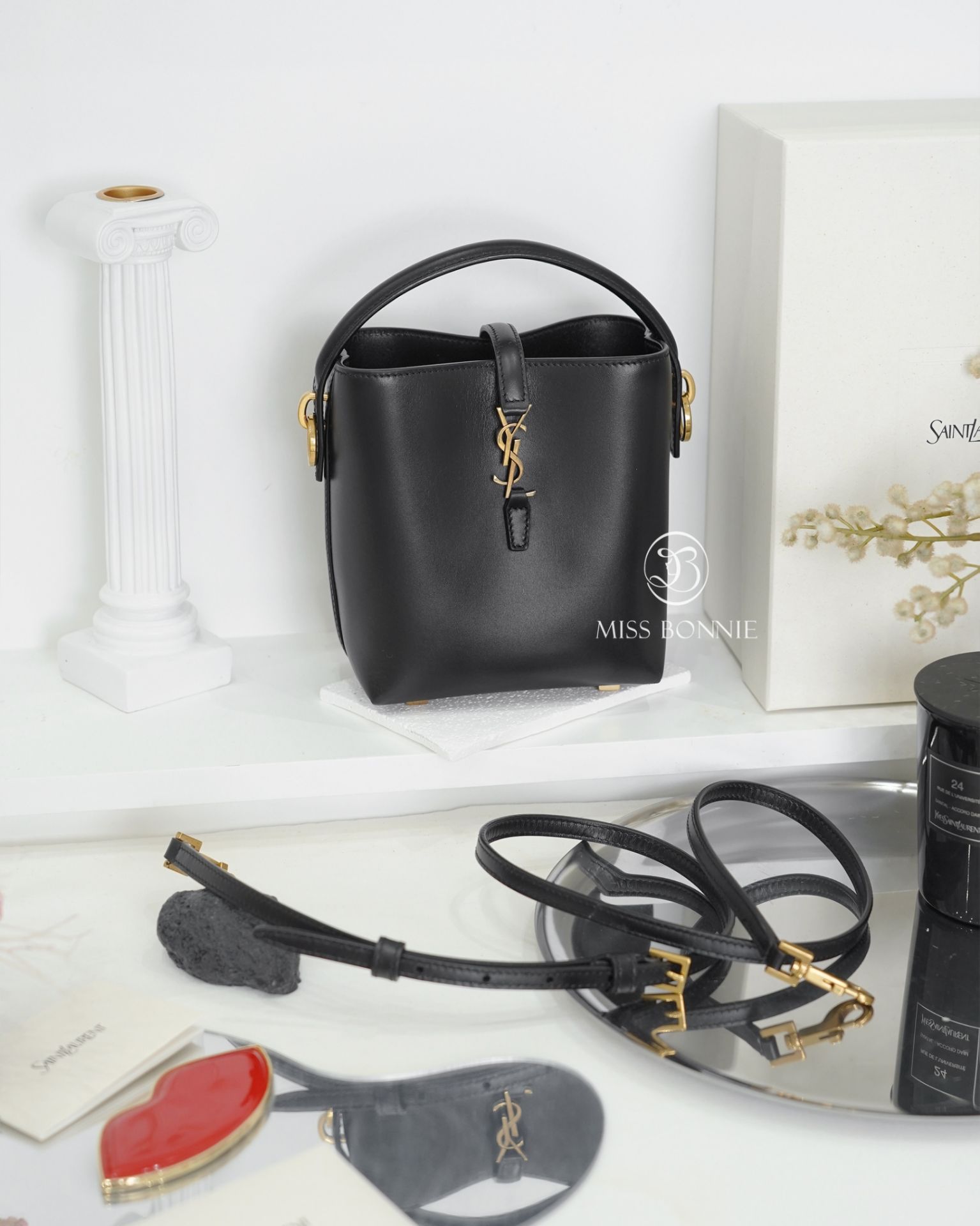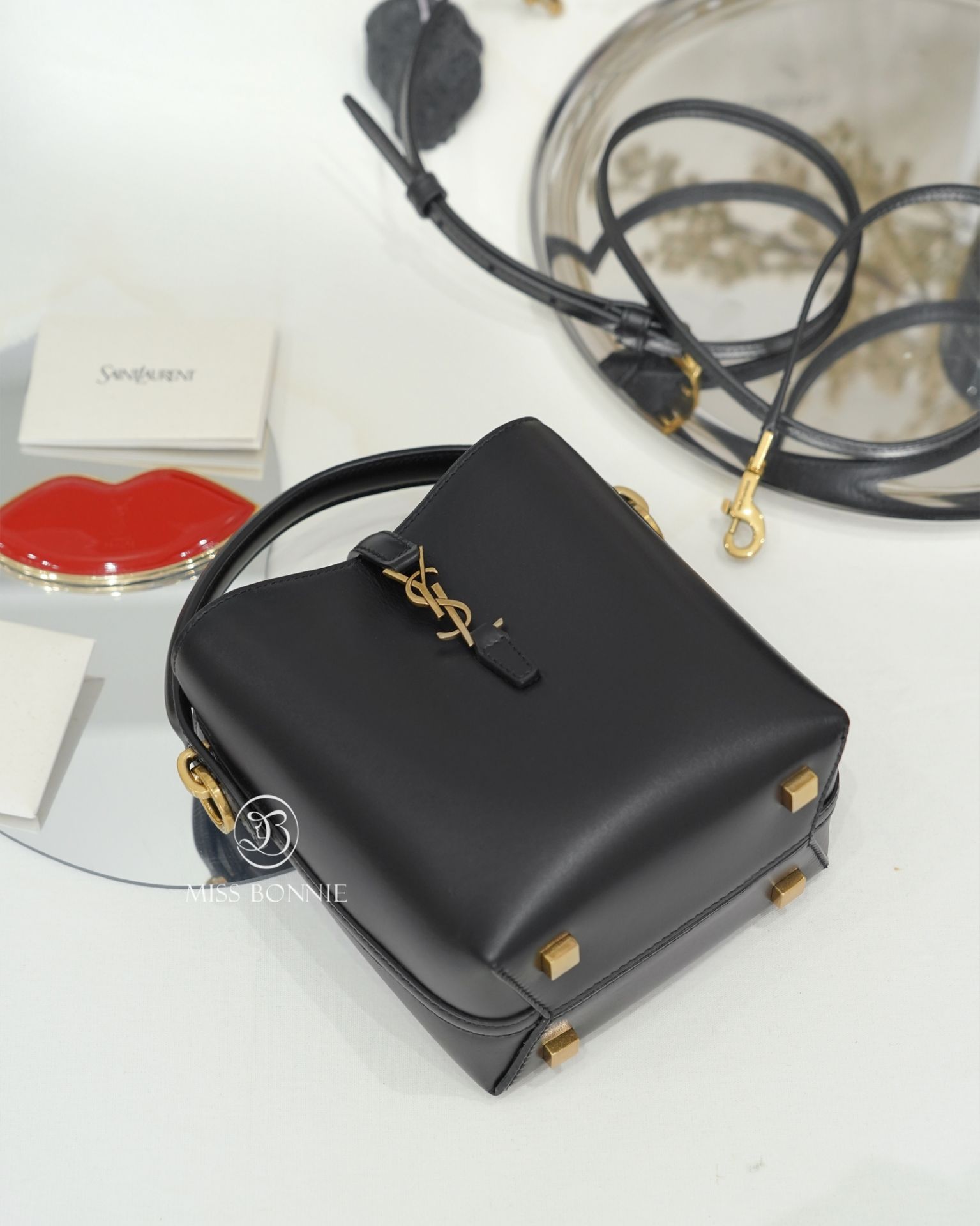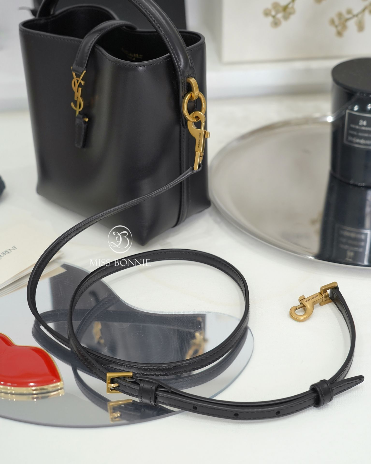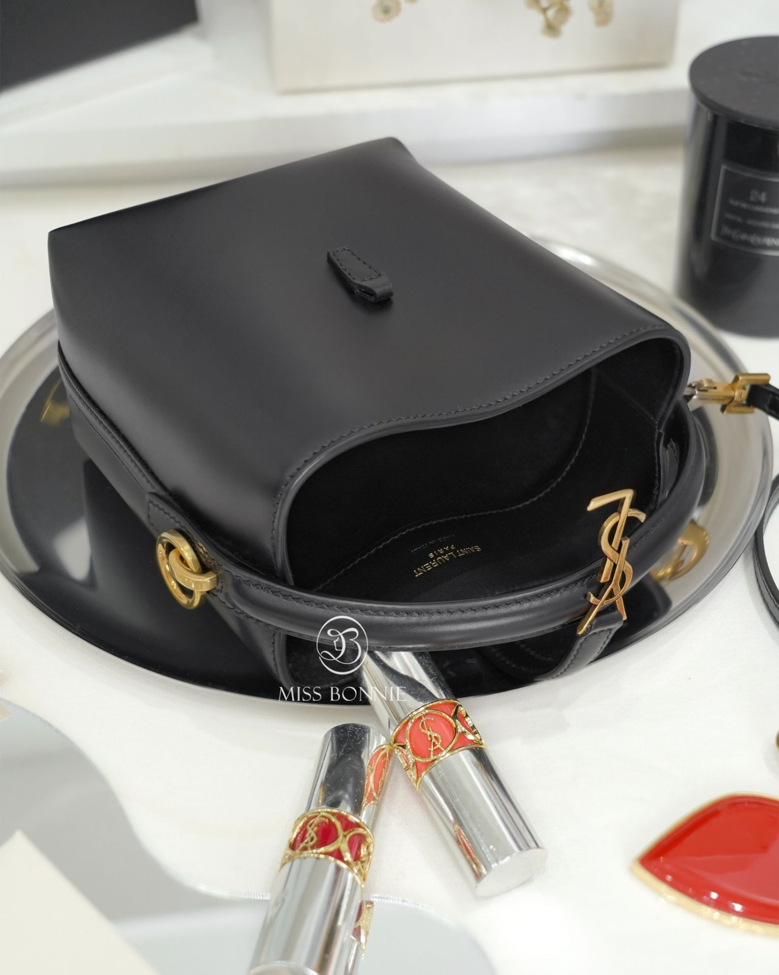YSL LE 37 亮面皮革迷你水桶包-黑色/金釦(預購)