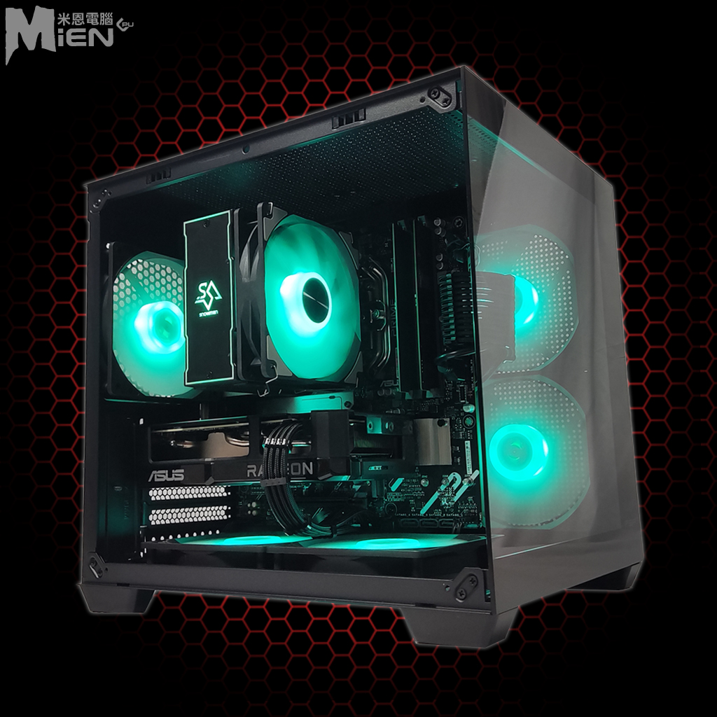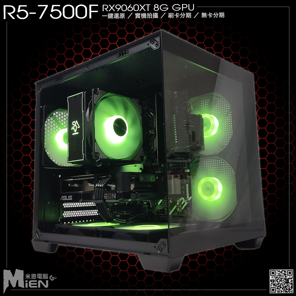 AMD R5-7500F RX9060XT 遊戲電競黑色機殼米恩電腦主機