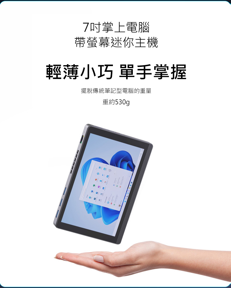 .內容物:M11 掌上平板電腦(Intel N200 3.7GHz)*1、專用電源變壓器(100~240V)*1、HDMI線*1