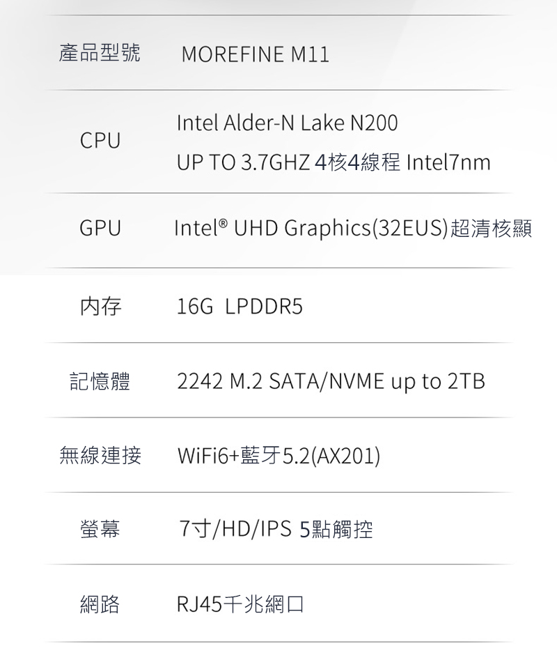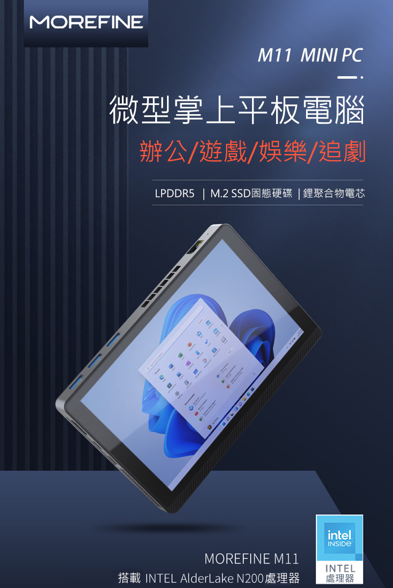 MOREFINE M11 掌上平板電腦(Intel N200 3.7GHz) - 16G / 1TB 小主機 掌上電腦 平板電腦 WIN11
