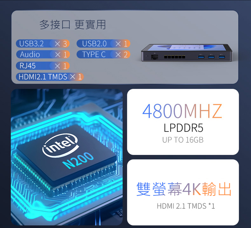 .第12代 Intel N200 四核四執行緒,輕鬆應付辦公、影音娛樂