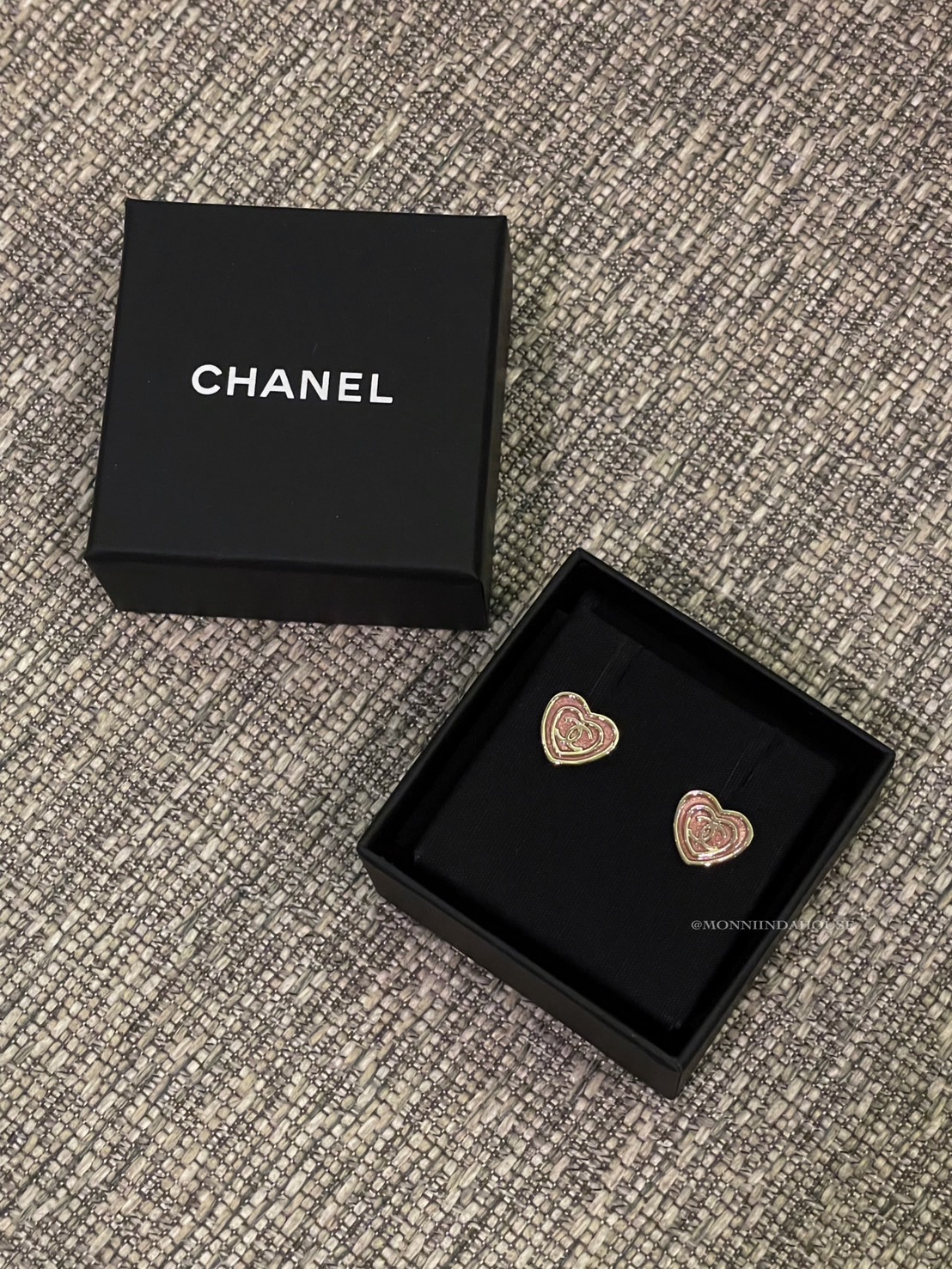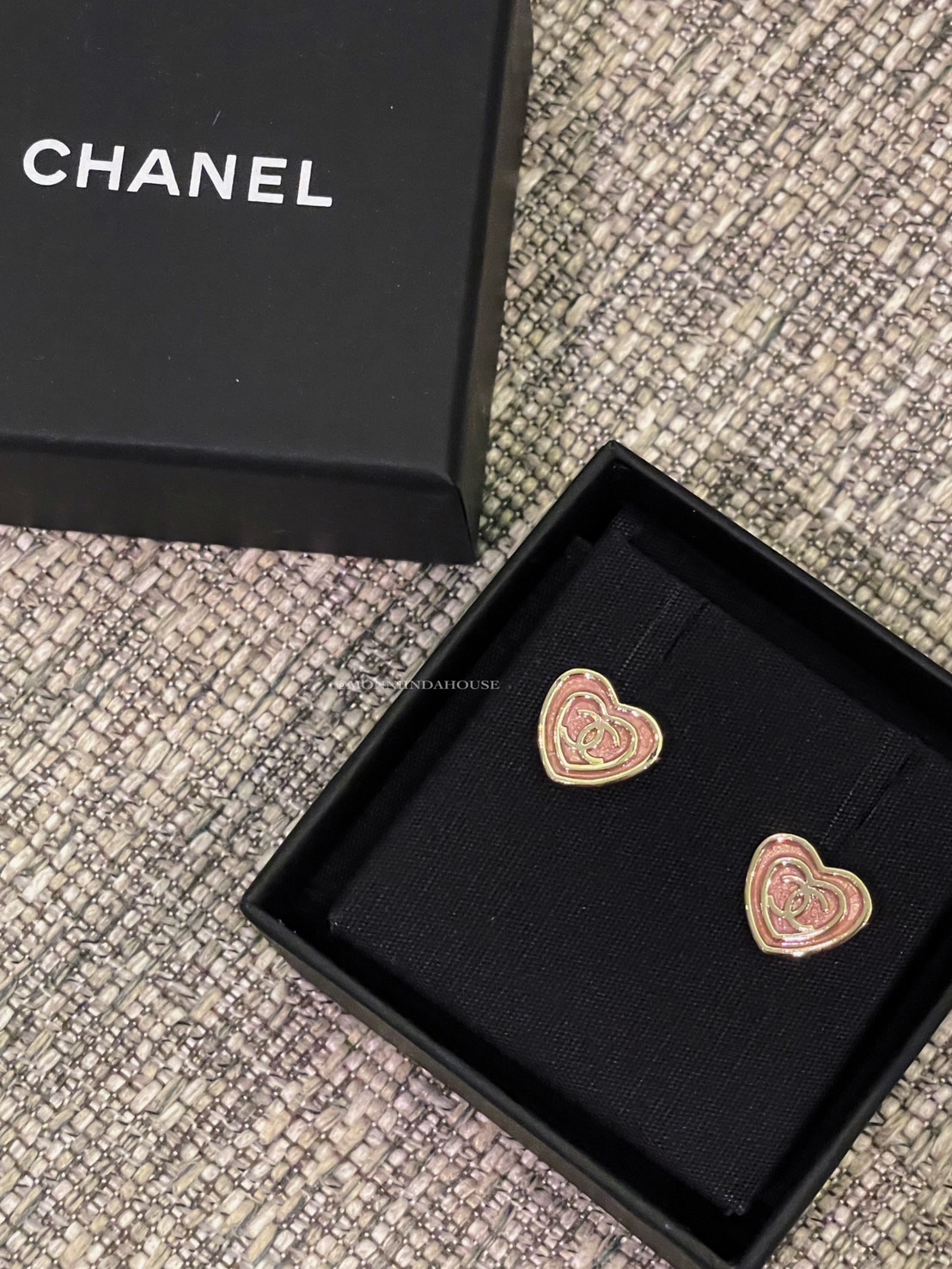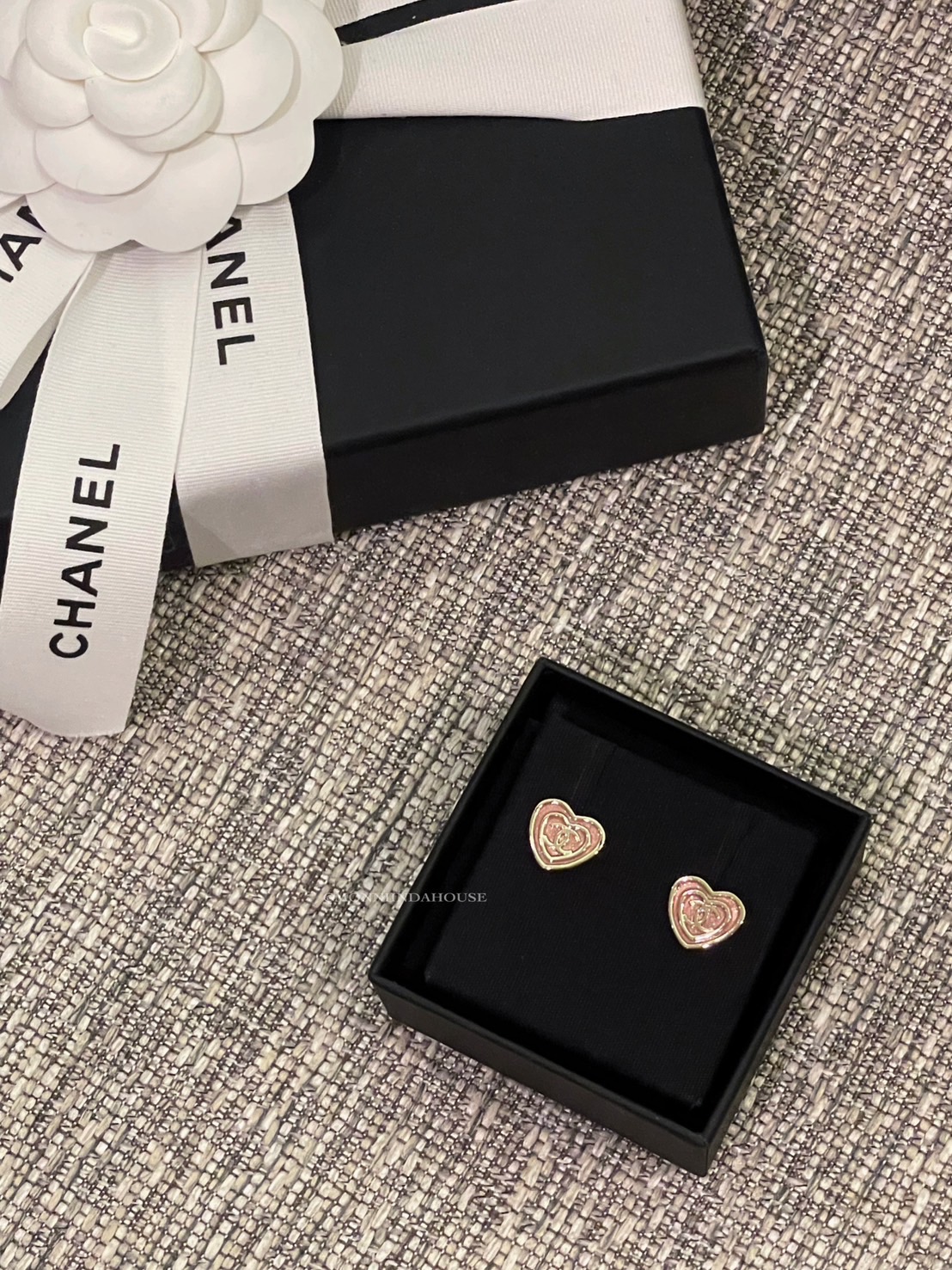 CHANEL 粉色珍珠母貝雙層愛心耳環