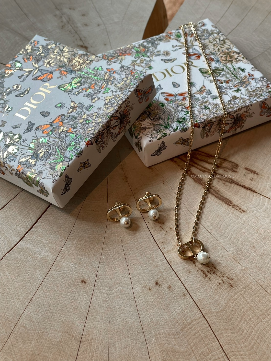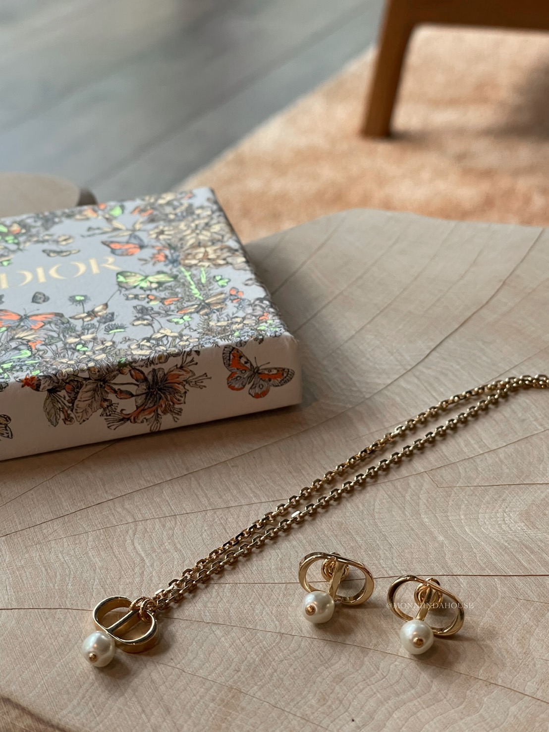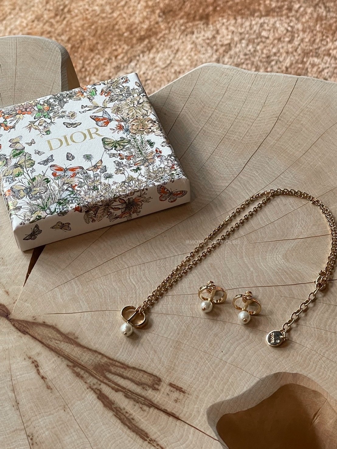 DIOR經典珍珠CD項鍊&耳環
