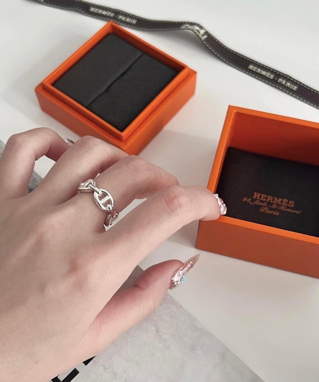 HERMÈS愛馬仕 豬鼻純銀戒指