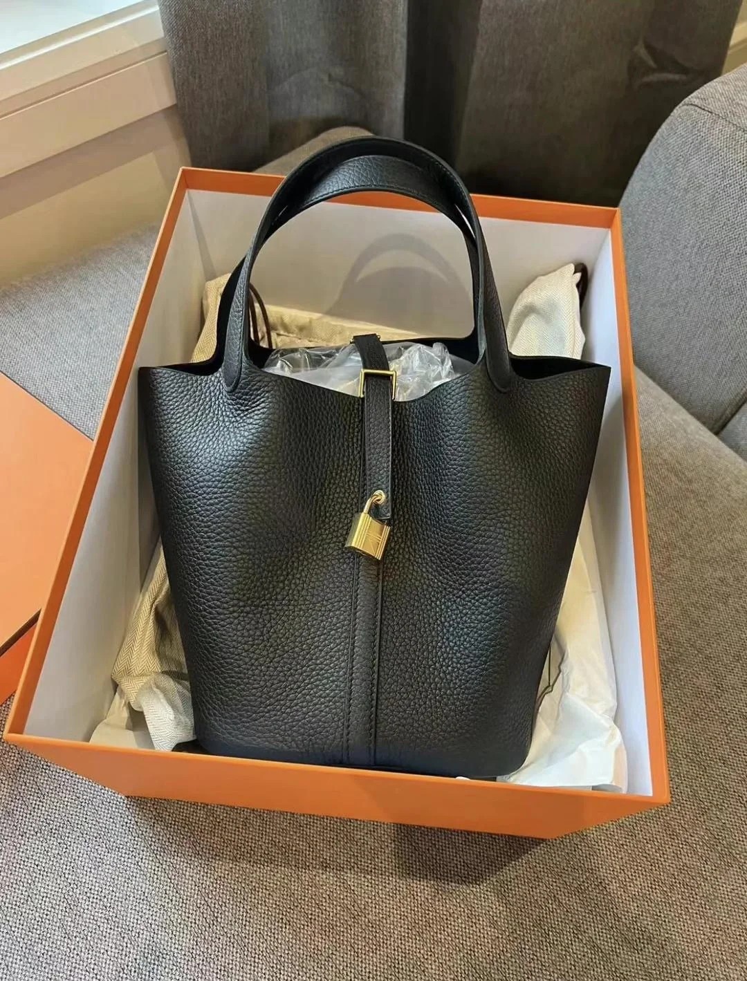 HERMÈS愛馬仕|picotin22 黑色金扣 菜籃子