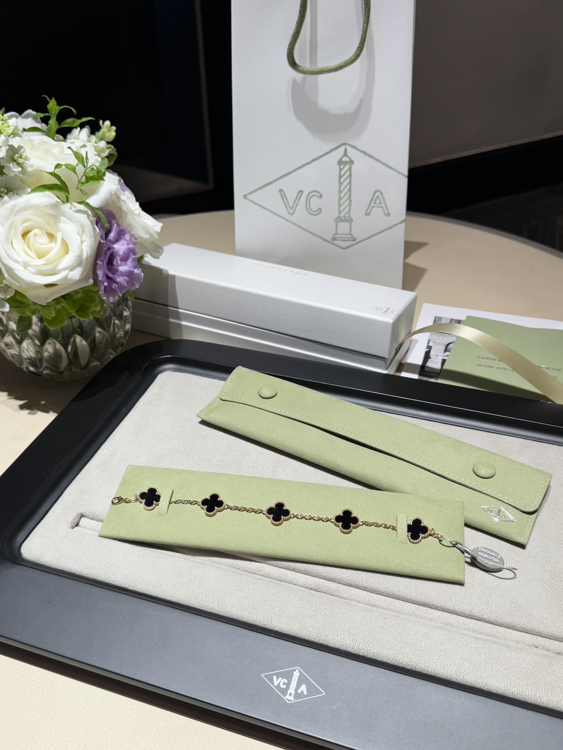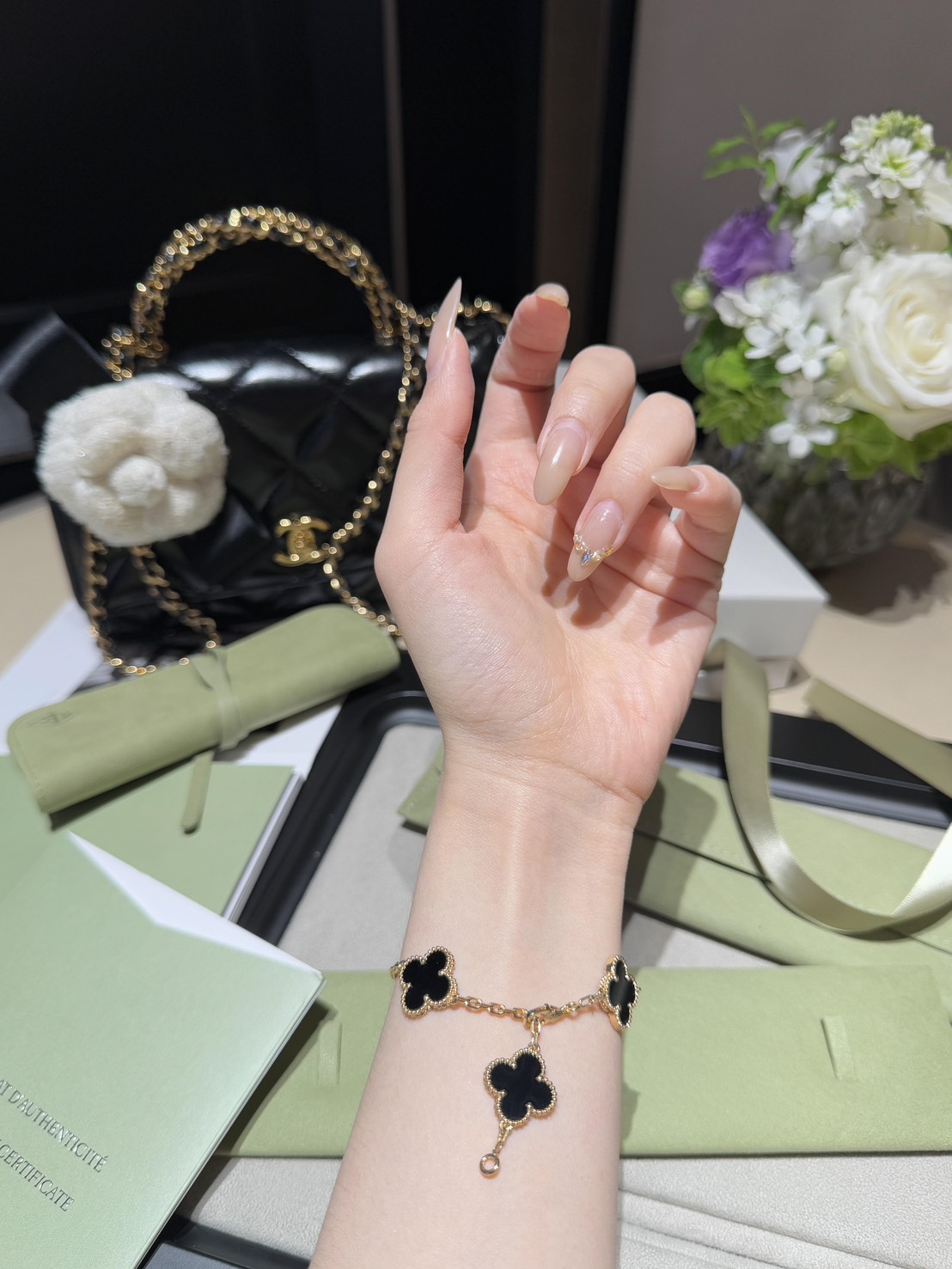 VCA 五花手鍊 黑瑪瑙 黃金鏈