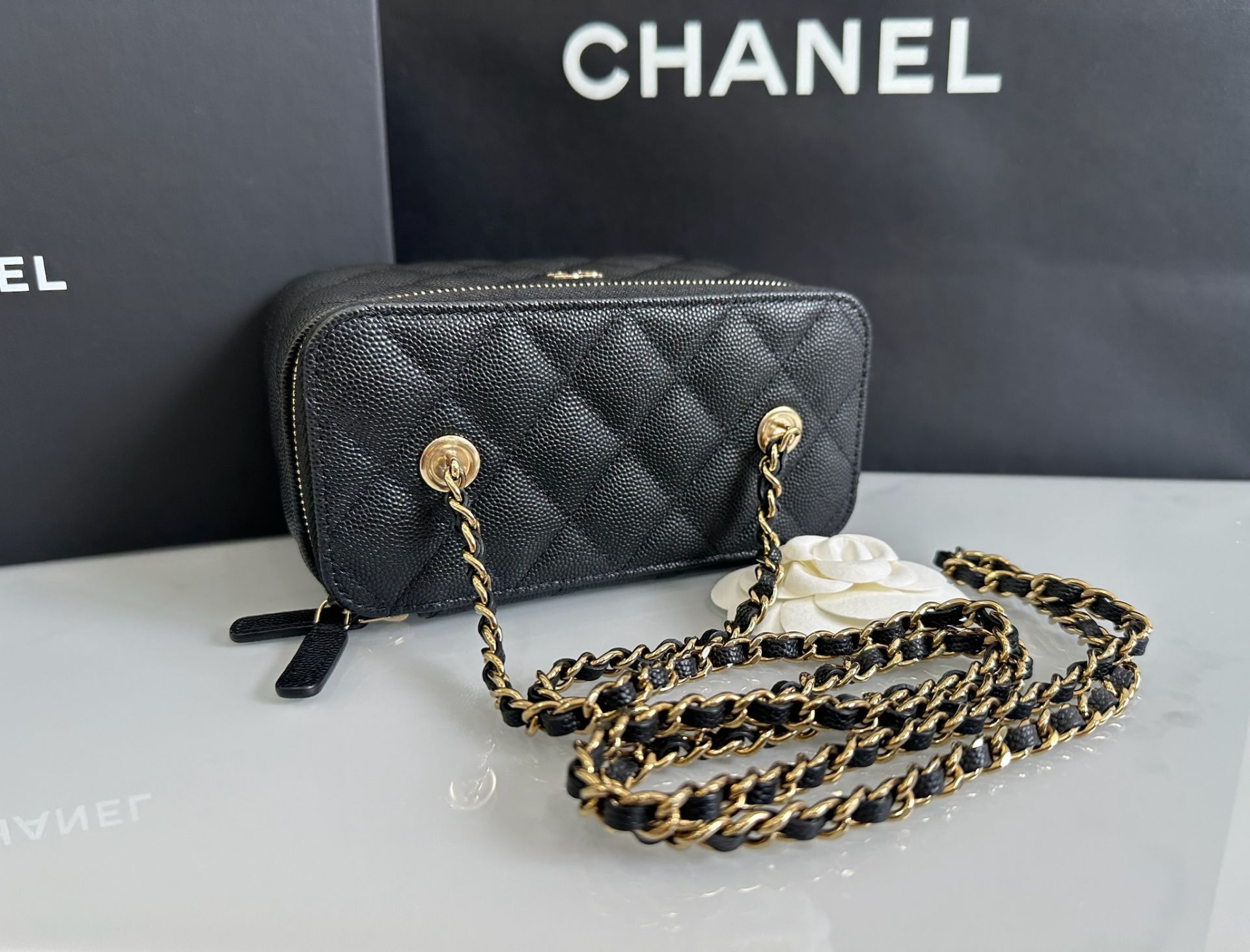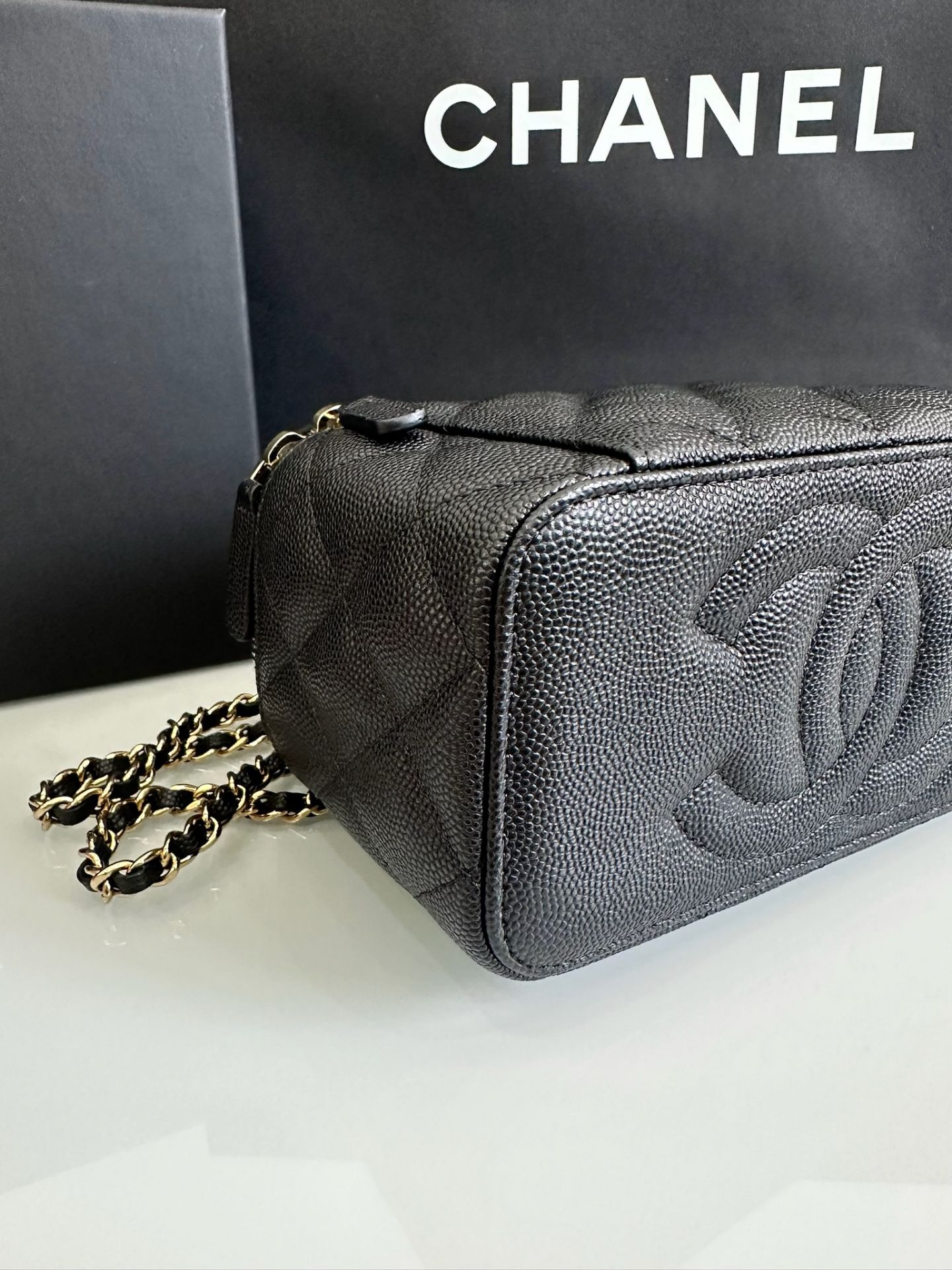 「M.Y精品」Chanel 香奈兒 荔枝皮 長盒子 化妝箱 鏈袋包 mini bag