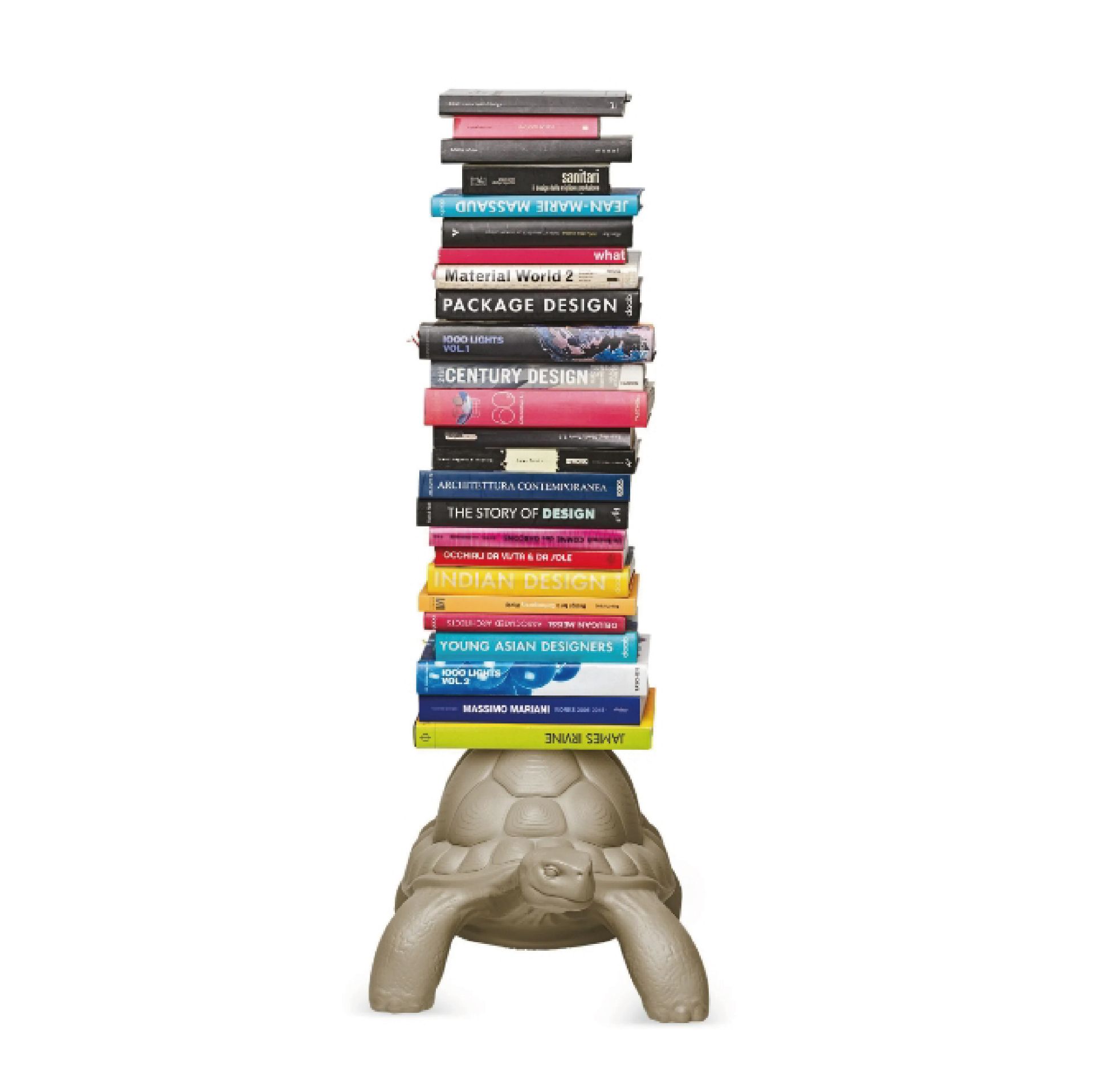 烏龜攜帶書櫃的甲殼上裝有一堆您最喜歡的書。由於帶有三個架子的金屬支架,確保它們能被緊緊固定!馬坎托尼奧再次受到自然世界及其奇異形式的啟發,他能夠將它們轉化為藝術概念,為我們的家帶來更趣味的生活。