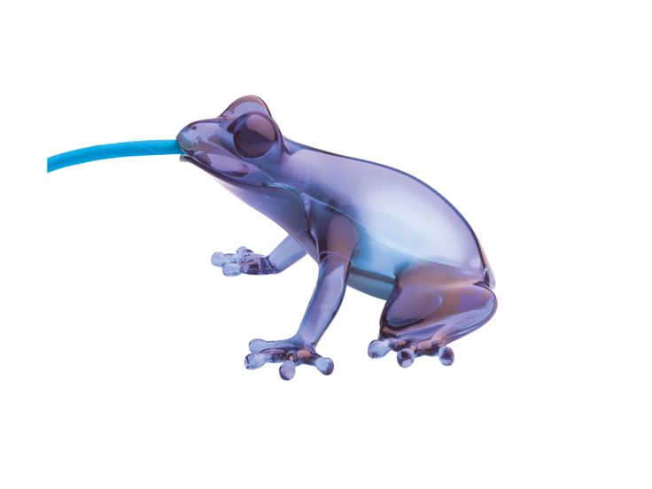 Hungry Frog 由 Marcantonio 設計,是一款小檯燈/壁燈,形狀像一隻青蛙,牠吃掉了肚子裡的燈泡,現在正在點亮。連接到燈泡上的繩子從青蛙的嘴裡出來,長 180 厘米,並覆蓋有帶有集成開關的織物,可以將其放置在任何角落。採用 PMMA 製成,有多種顏色可供選擇。
