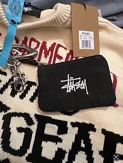 𝐌𝐫.𝐏𝐚𝐧𝐠𝐤𝐚©現貨🖤STUSSY CANVAS COIN POUCH 零錢包 小包 萬用包 黑色 水洗黑 潮流