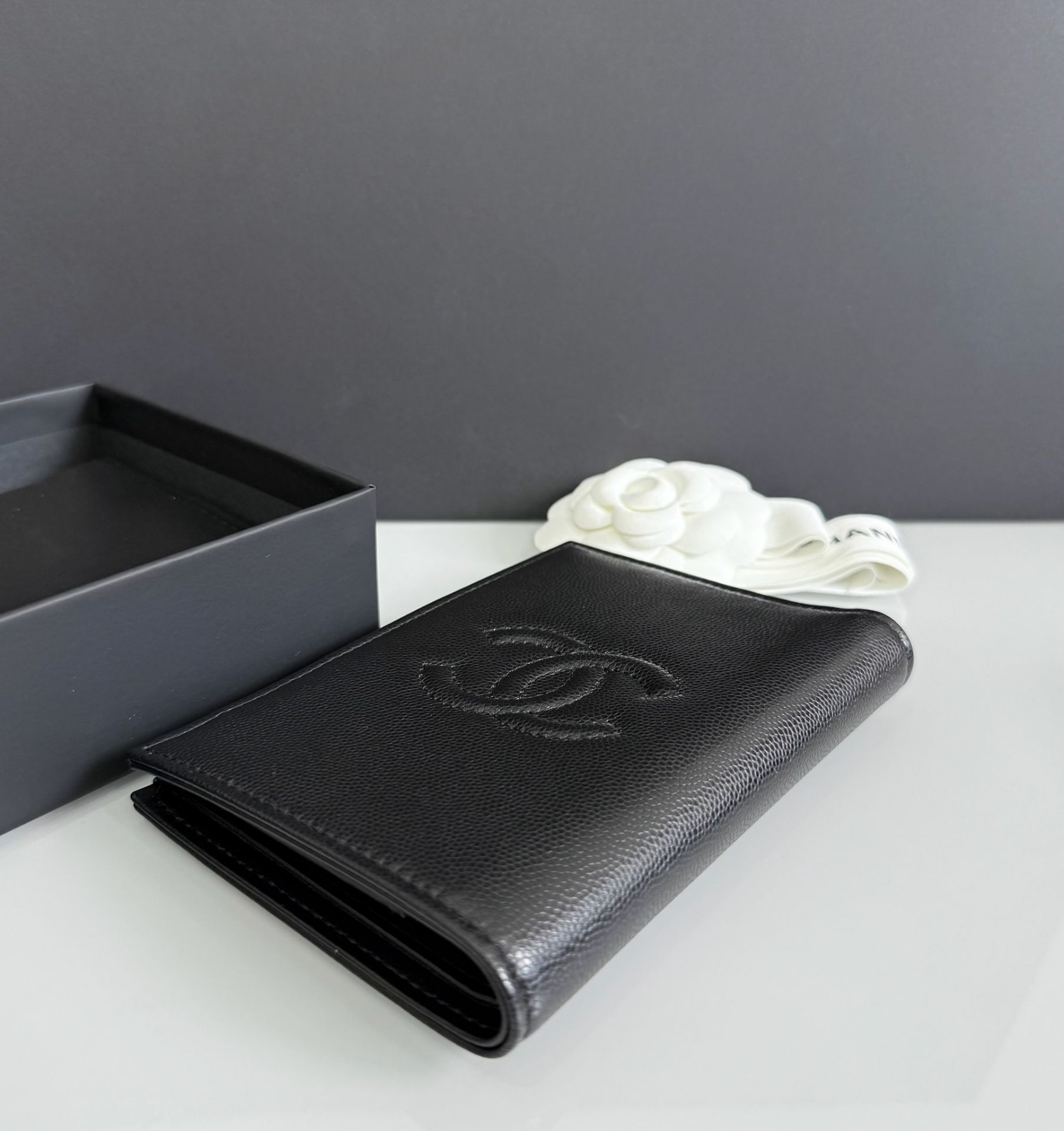 「M.Y精品」 Chanel 小香 25A 大logo 內拉鏈 中夾 荔枝牛皮 護照套 內拉鏈夾層