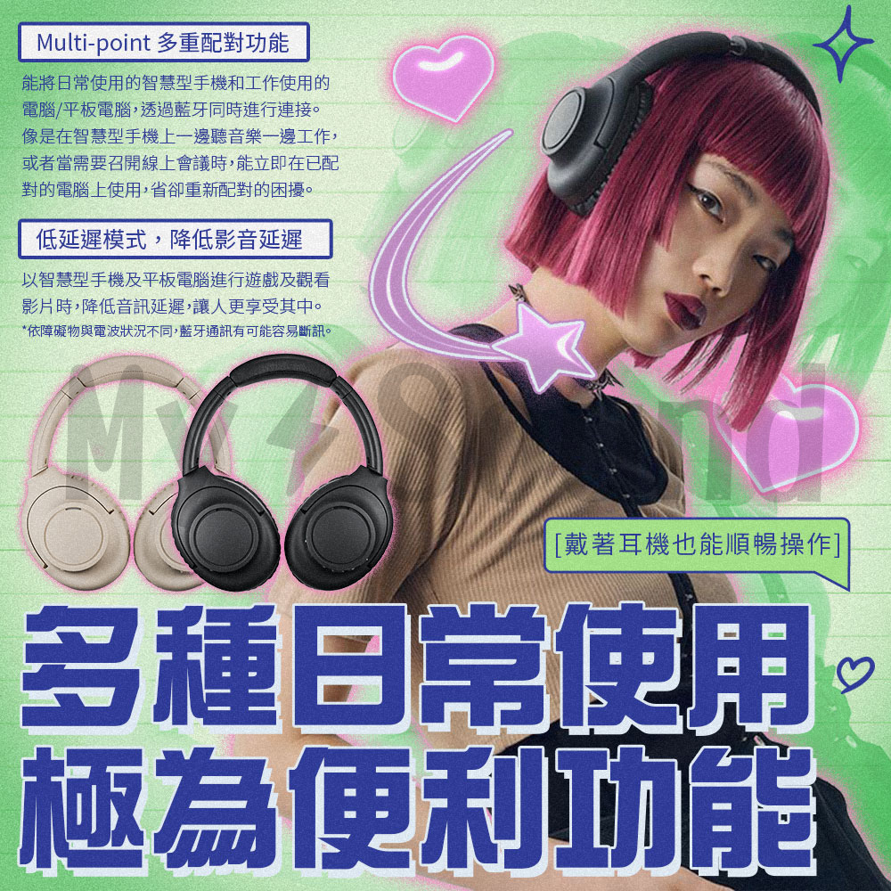 ▶融入日常的環境音控制功能 ▶在聆聽外界聲音的同時,保持既有聲音空間的外部環境音模式 ▶利用複合數位降噪技術,打造專屬寂靜空間 ▶實現最長約90小時的無線聆聽 ▶有線連接也能進行通話 ▶符合多元化時代的設計理念 ▶追求佩戴曲線美感的設計 ▶能對應各種使用情境的高音質表現 ▶清晰的通話品質 ▶可同時與電腦和手機連接的 Multi-point 多重配對功能 ▶戴著耳機也能順暢操作 ▶低延遲模式(Low Latency Mode)降低影音延遲,享受娛樂