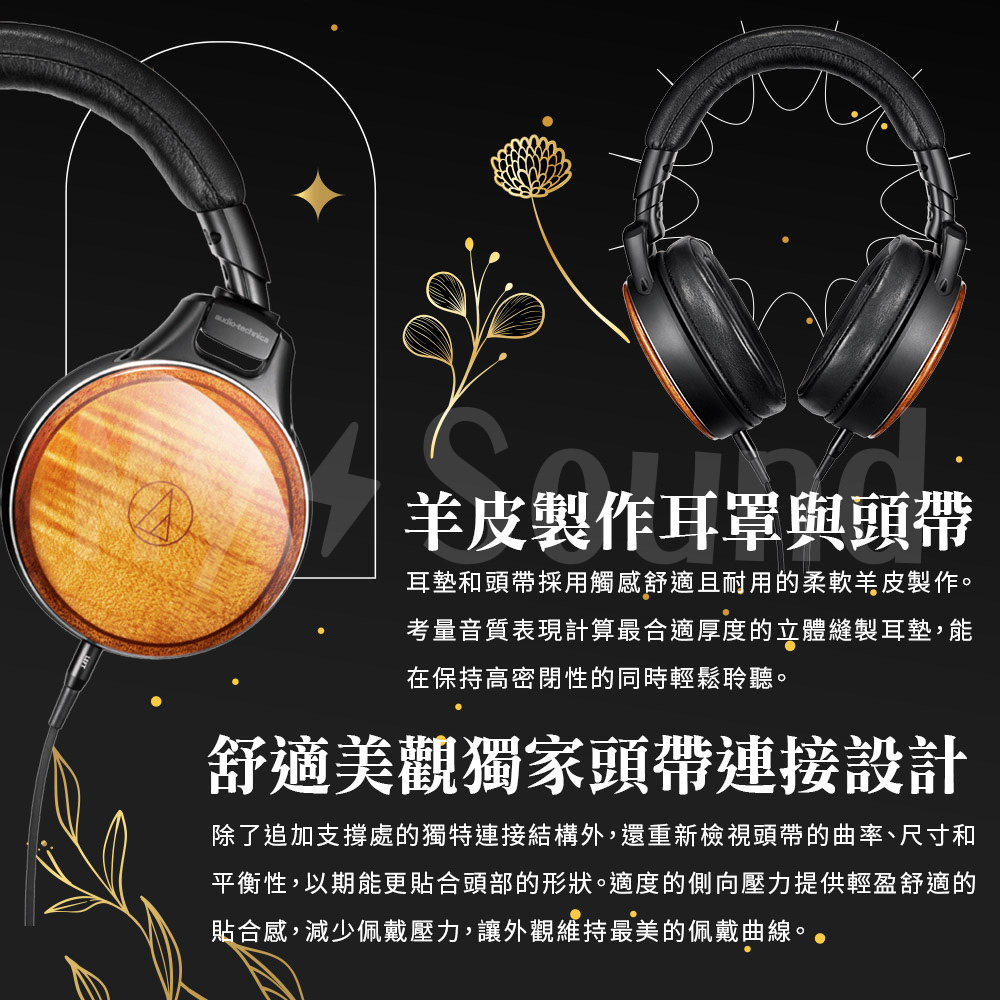 ▶鐵三角內部所打造的全新設計Ø45mm高解析驅動單元 ▶搭載能最大限度地發揮驅動力,採用一體型純鐵磁軛的高性能磁氣回路 ▶在能表現高解析度低頻的振膜上施以DLC擬鑽碳纖覆層,提升高頻再現性 ▶延展性佳的音色與通透澄澈的音場 ▶由火焰楓木、胡桃木及桃花心木結合而成的3層構造機身 ▶世上獨一無二的美麗紋路 由工匠手工細心打磨而成 ▶擁有優秀音響特性,由鋁合金切削成型的專用設計筐體 ▶由羊皮製作而成的耳罩與頭帶 ▶採用高純度銅線6N-OFC+OFC的星形四芯絞線結構的A2DC端子可拆式導線 ▶可拆卸式高音質A2DC端子 ▶支援Ø4.4mm平衡連接 ▶適合攜帶外出的水平折疊機構