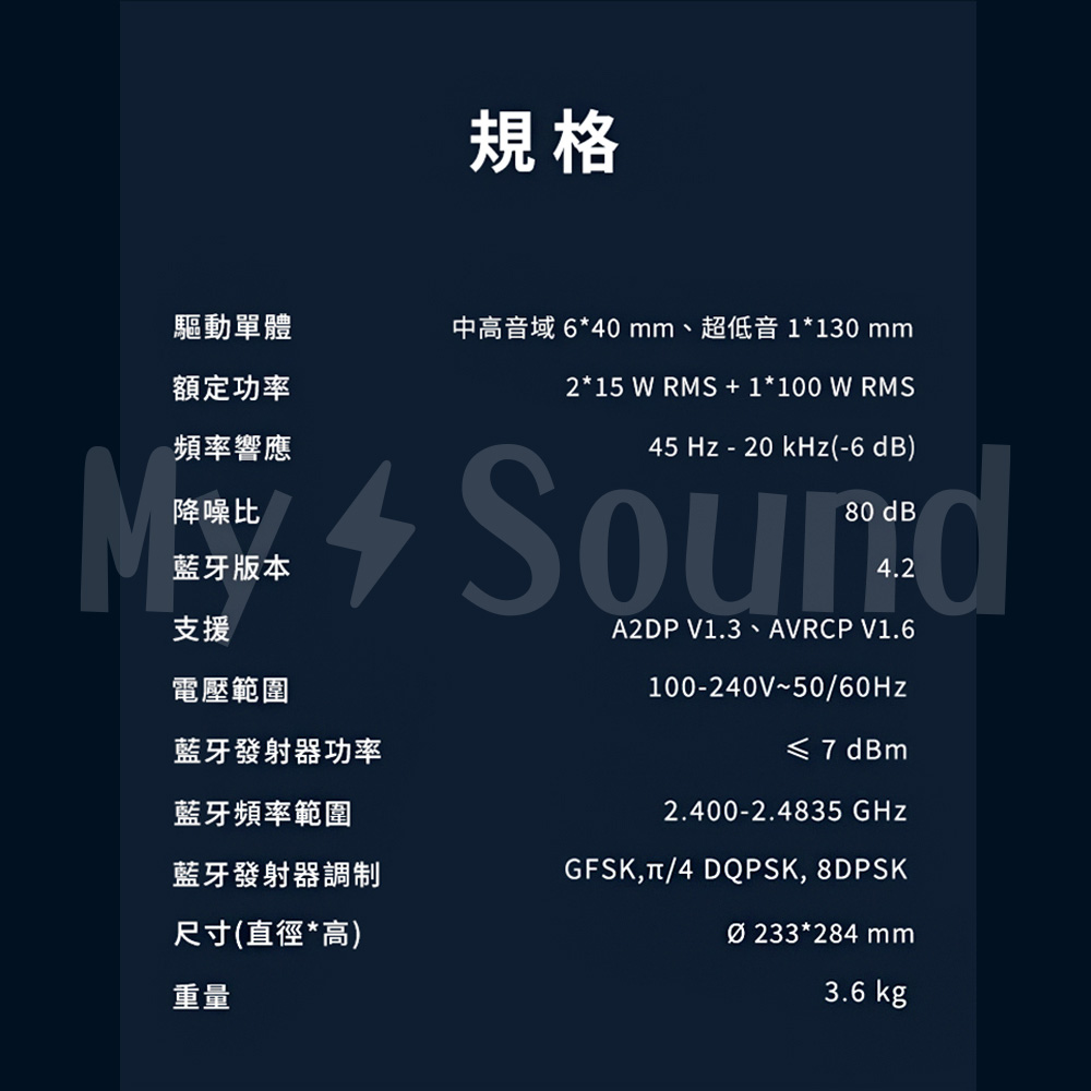 .驅動單體:中高音域6*40mm、超低音1*13mm