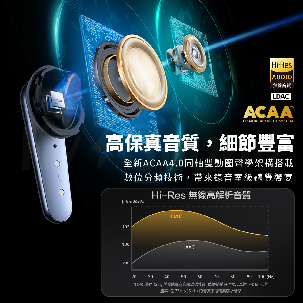 LDAC+ANC降噪:耳機5小時/充電盒25小時