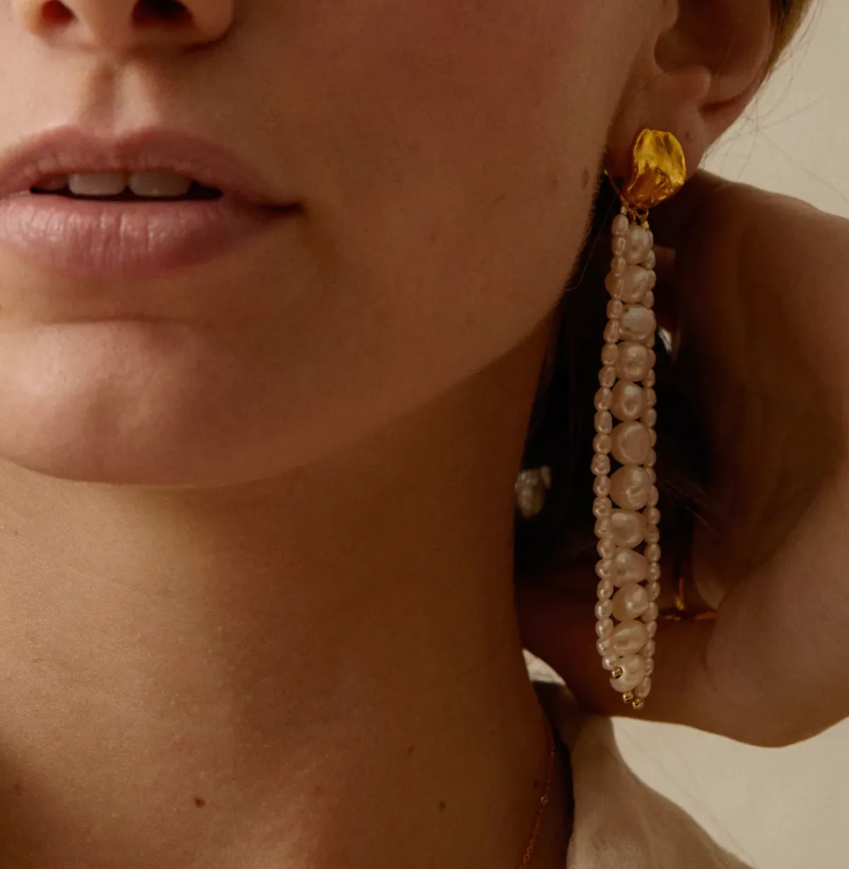Zapti 垂墜耳環是我們在巴黎工坊精心手工製作的成果。 溫暖、捕捉光線這款太陽鏡採用原始紋理線條,飾有不完美的淡水珍珠,為您的耳朵增添珍貴氣息。該系列的歷史:從 Pyrgi 到巴黎,記住你從哪裡來,停下來,回首過去,花時間看看走過的路感謝歲月和經歷,重新與最重要的東西聯繫起來:家庭質量、道德和負責任的鏈條鍍金,材質:24 克拉黃金,3 微米,黃銅為底重量:6.3 克