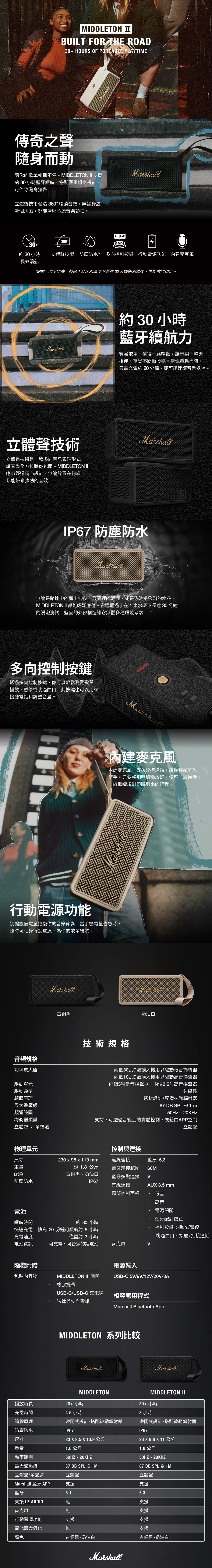 Marshall Middleton II 藍牙喇叭【古銅黑】