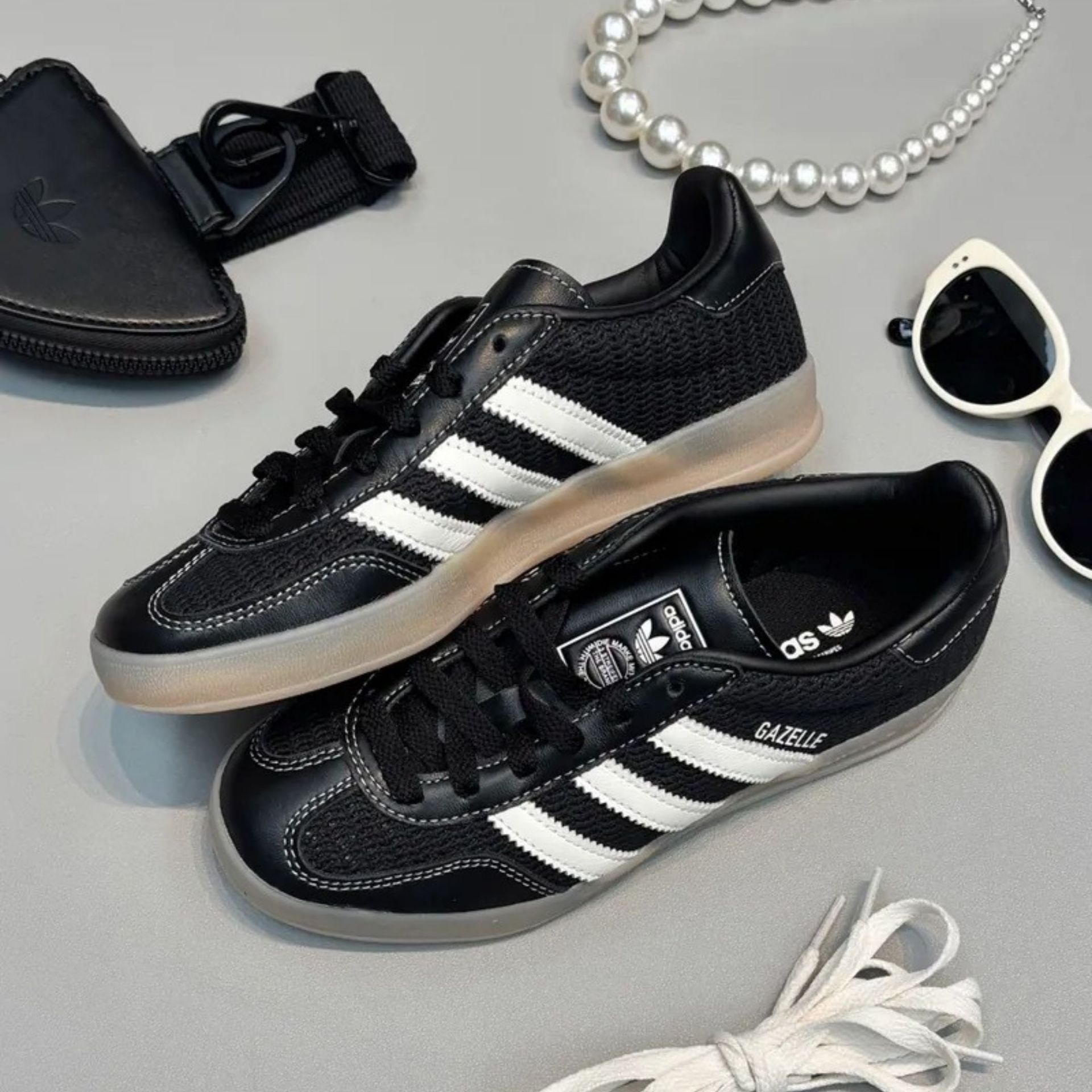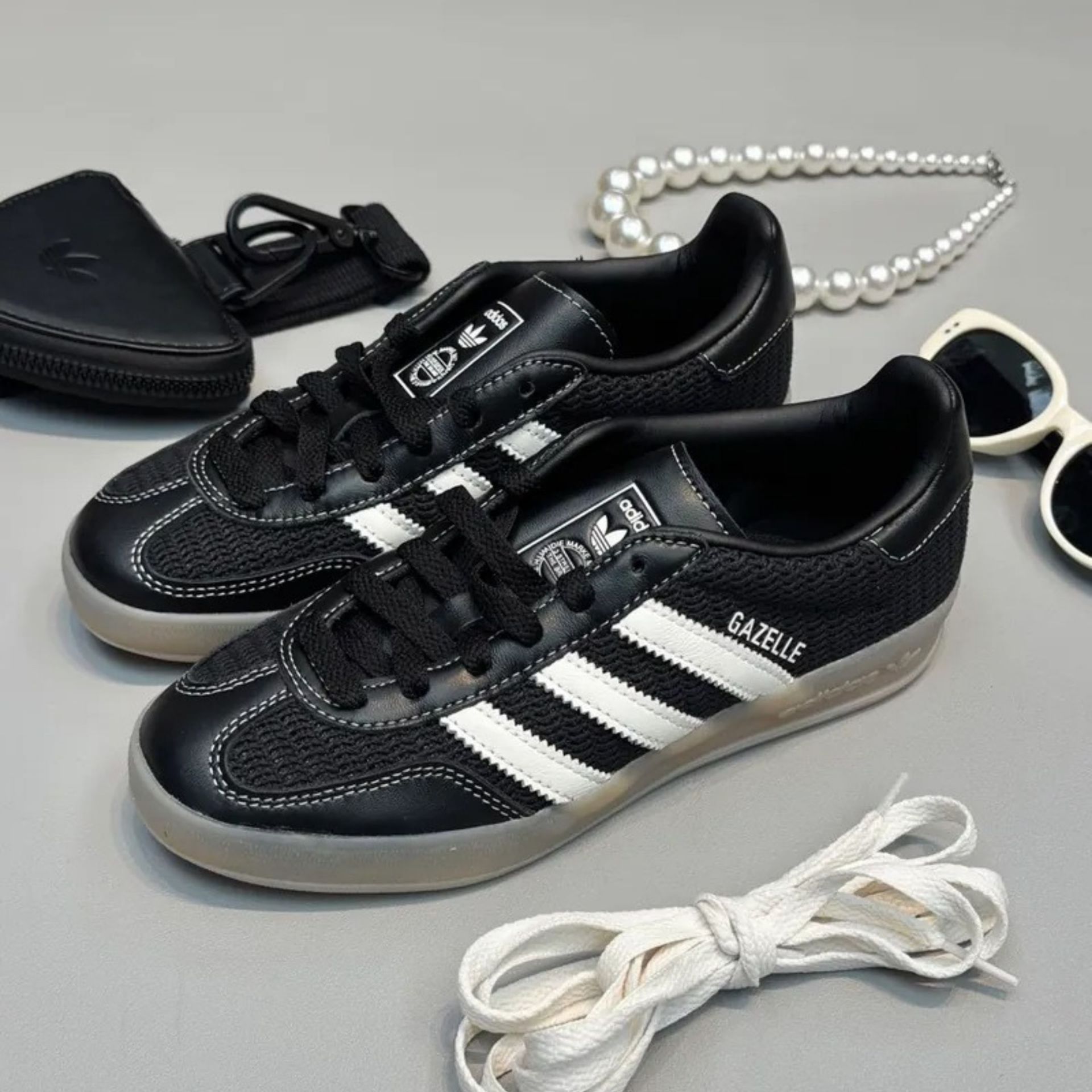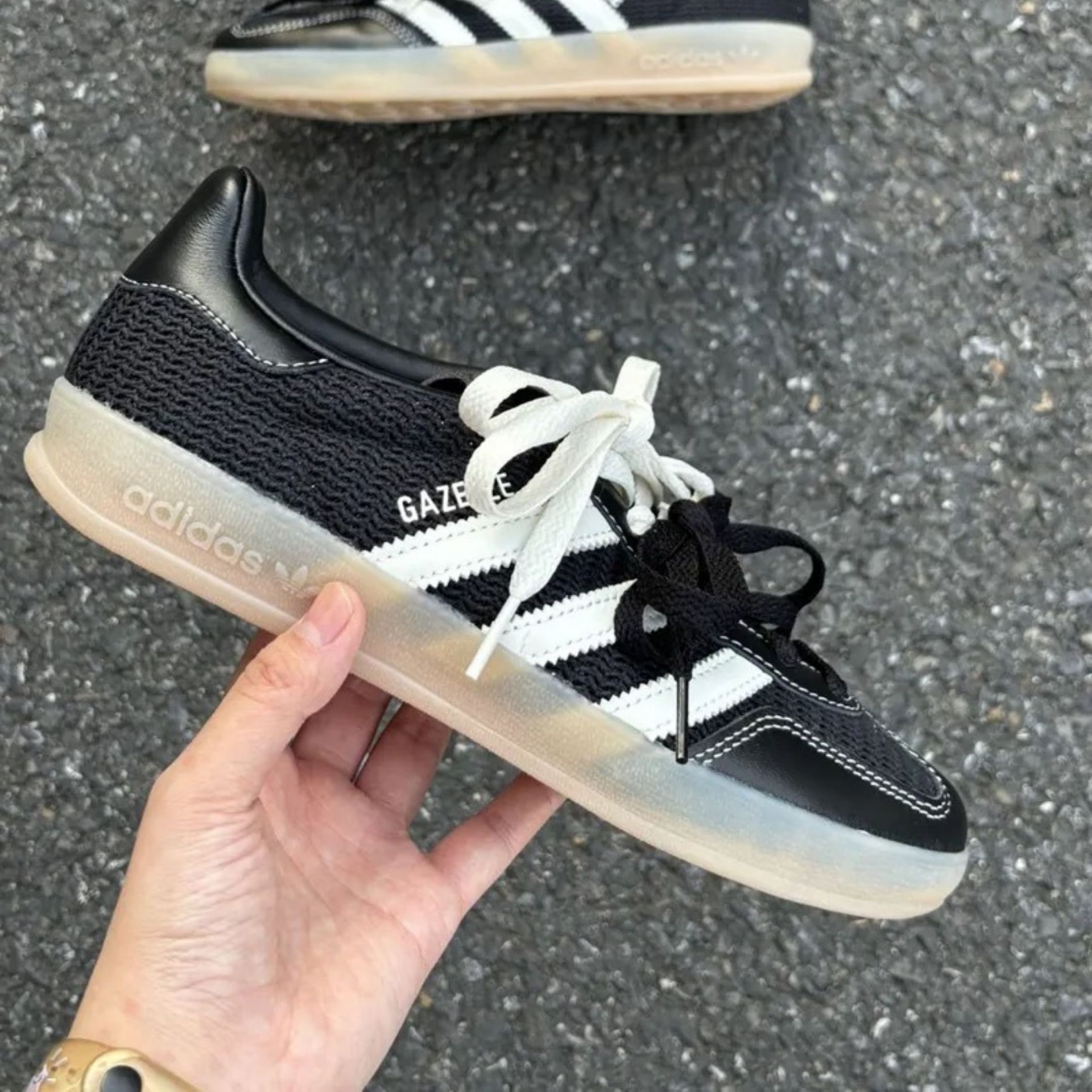 NICEDAY 代購 ADIDAS GAZELLE INDOOR 黑 奶油 編織 皮革 縫線 男女鞋 JQ7084