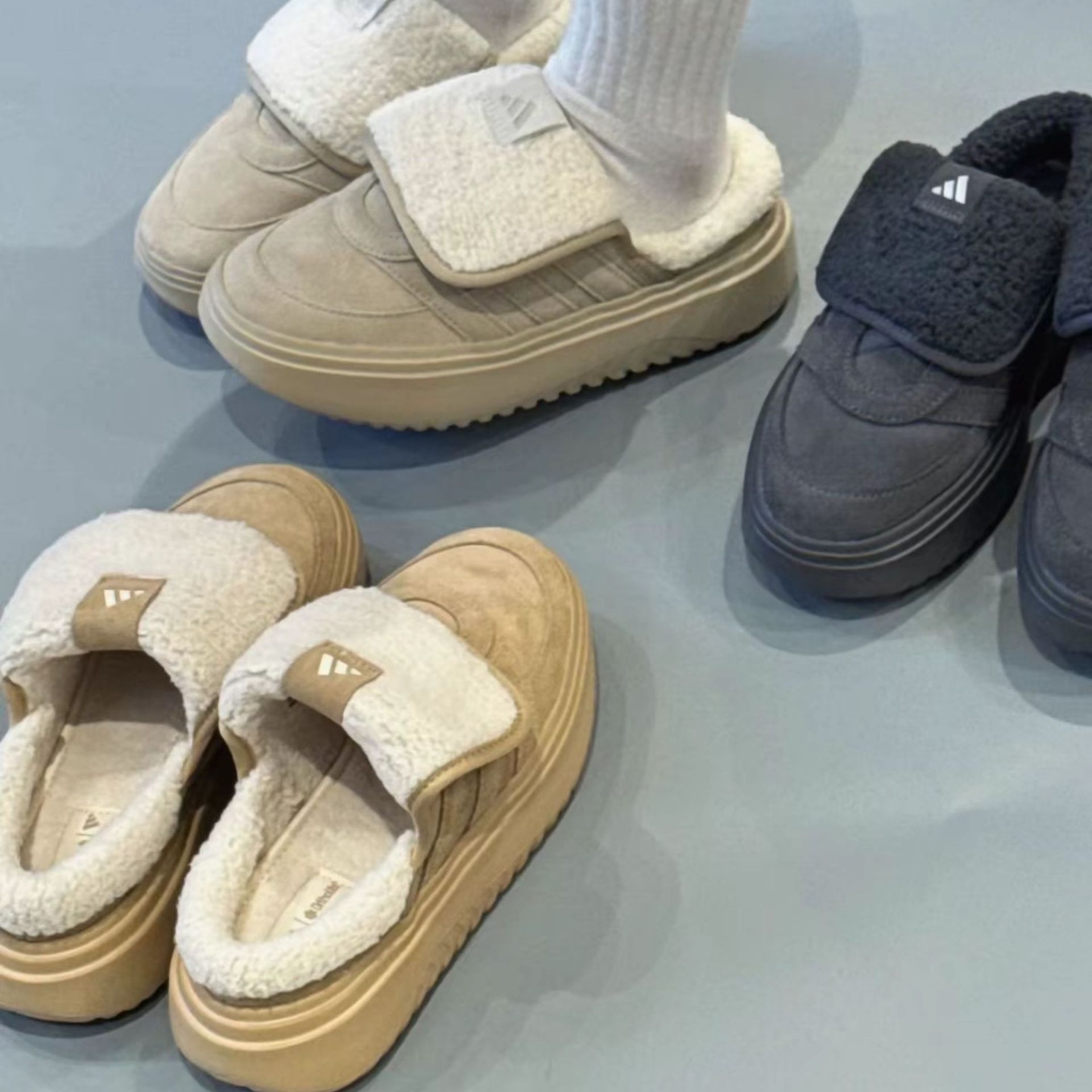 NICEDAY 代購 ADIDAS GRAND COURT MULE 毛毛 拖鞋 穆勒鞋 翻蓋 鞋舌 女鞋 卡其灰 淺棕 奶油灰 JS4997