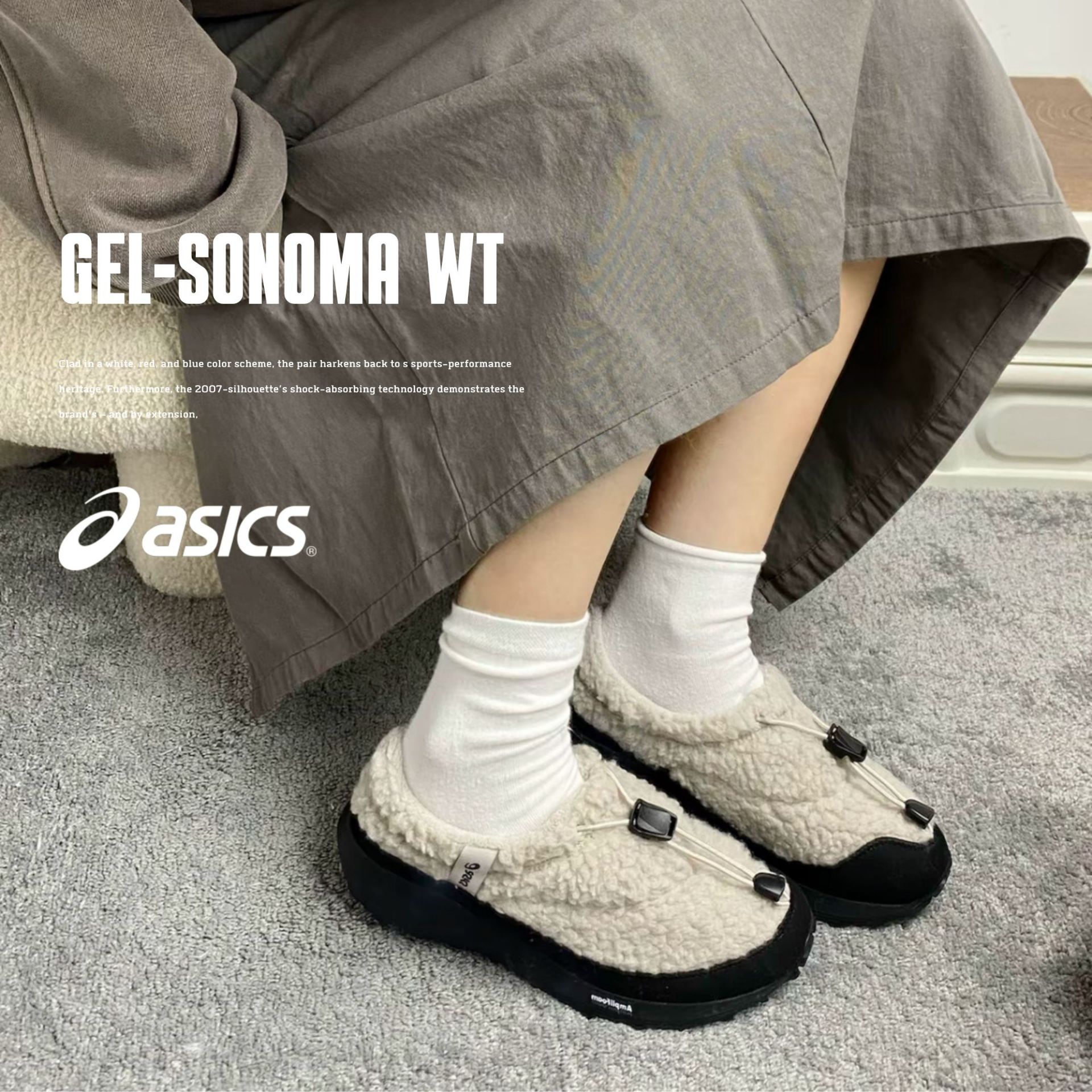 NICEDAY 代購 ASICS GEL-SONOMA WT 熊貓 貓熊 黑白 米白黑 絨毛 羊羔絨 抽繩 泰迪鞋 穆勒 懶人鞋 女鞋 1203B036-020