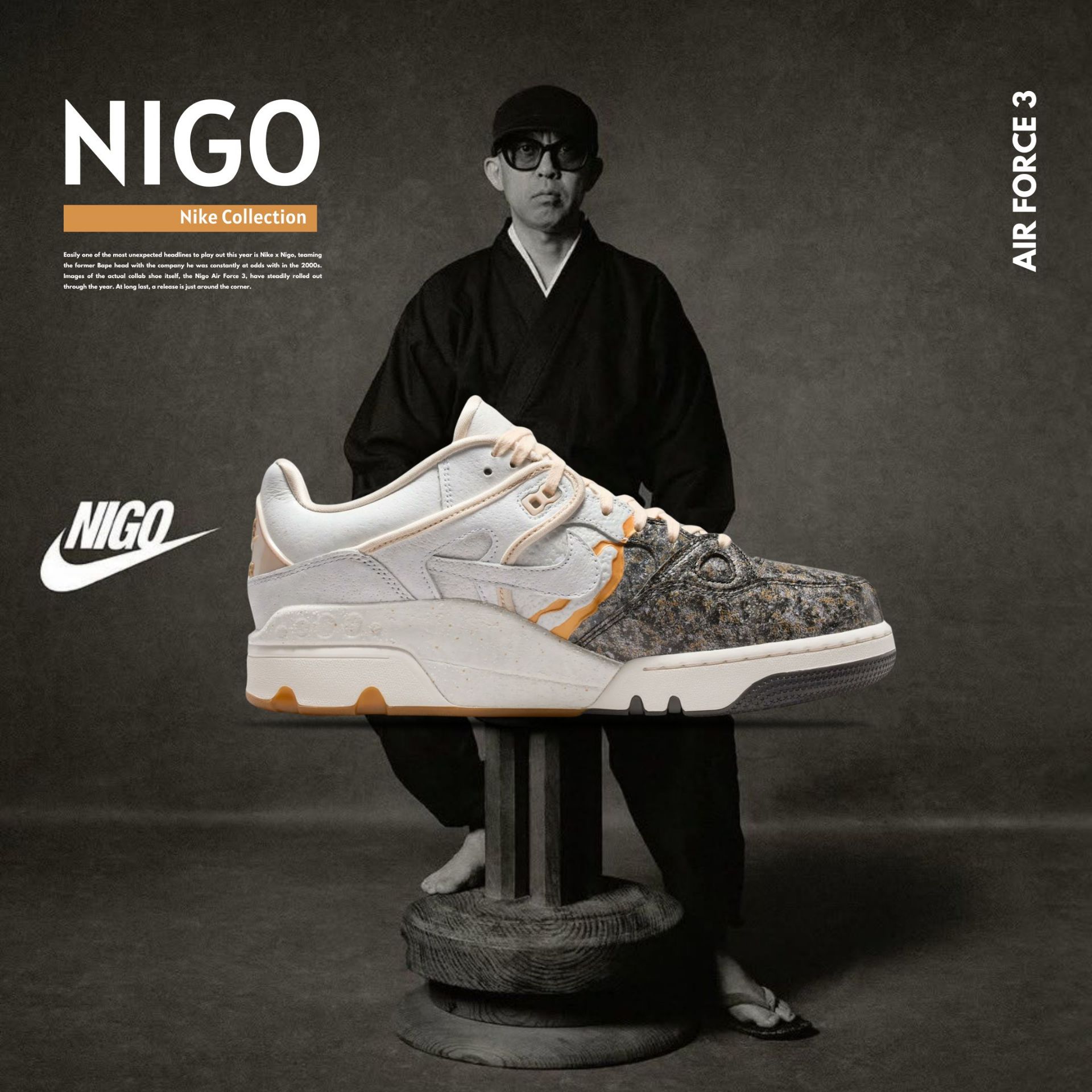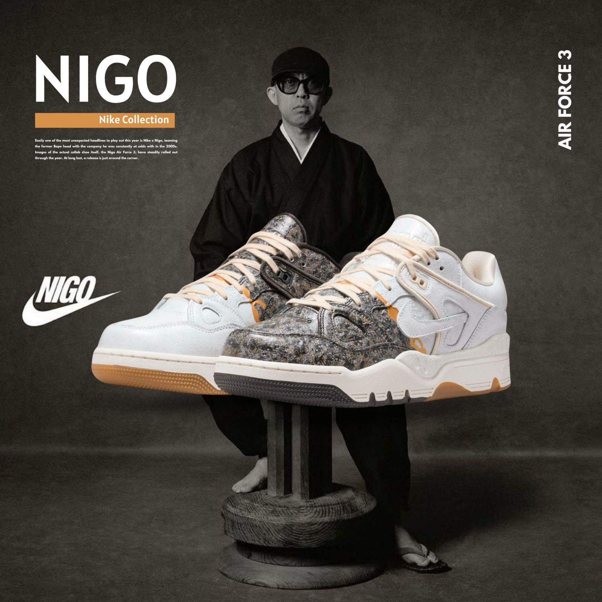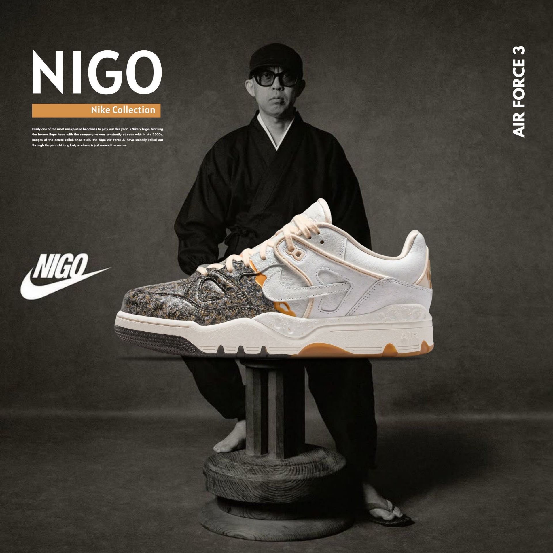 NICEDAY 代購 NIGO x Nike Air Force 3 Kintsugi 鴛鴦 金銀 銀 金 金屬 復古 奶油金 聯名 IB1801-001