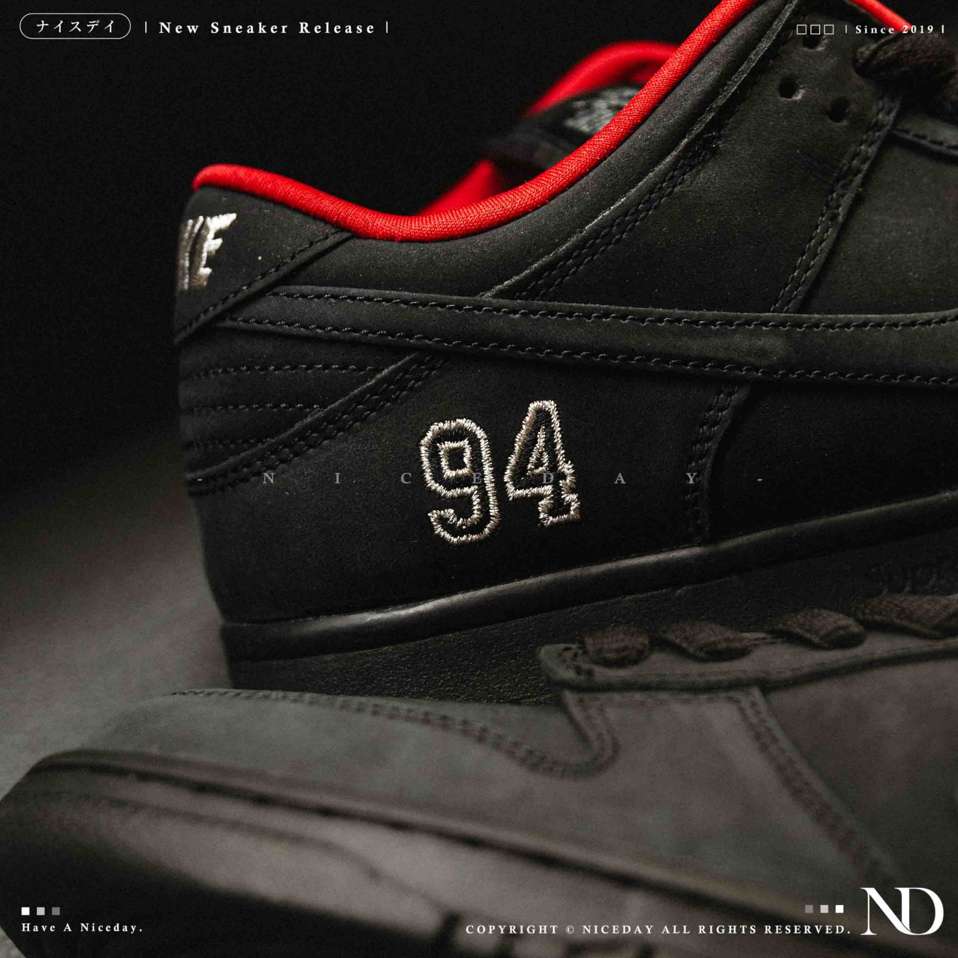 NICEDAY 代購 Supreme x Nike SB Dunk Low 聯名 黑 黑紅 板鞋 麂皮 刺繡 94 HQ8487-001