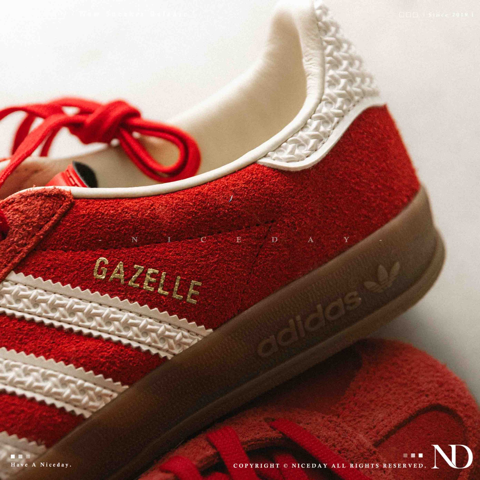 NICEDAY 現貨 Adidas GAZELLE INDOOR 玫瑰紅 紅 紅白 白紅 德訓鞋 滑板 復古 IF1808