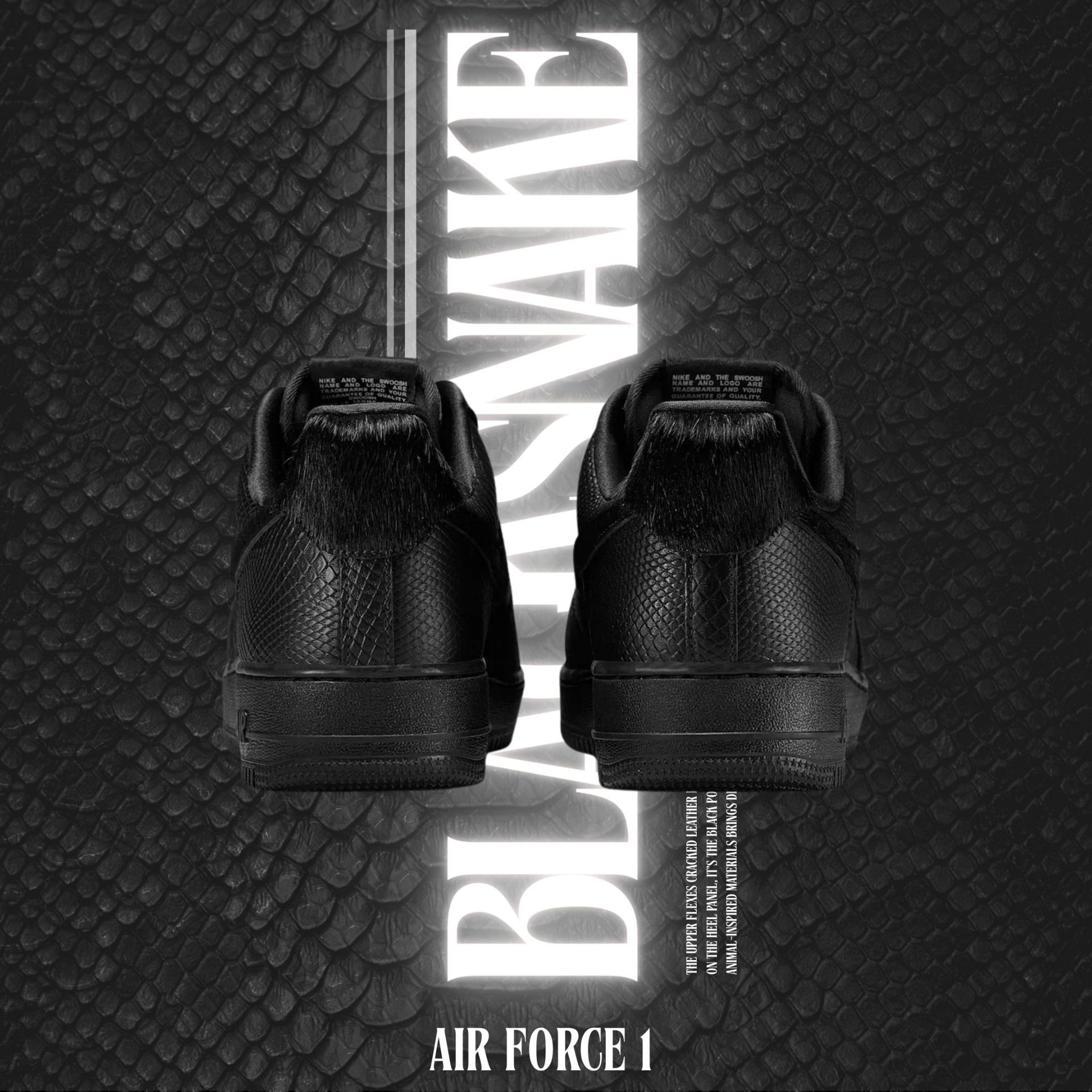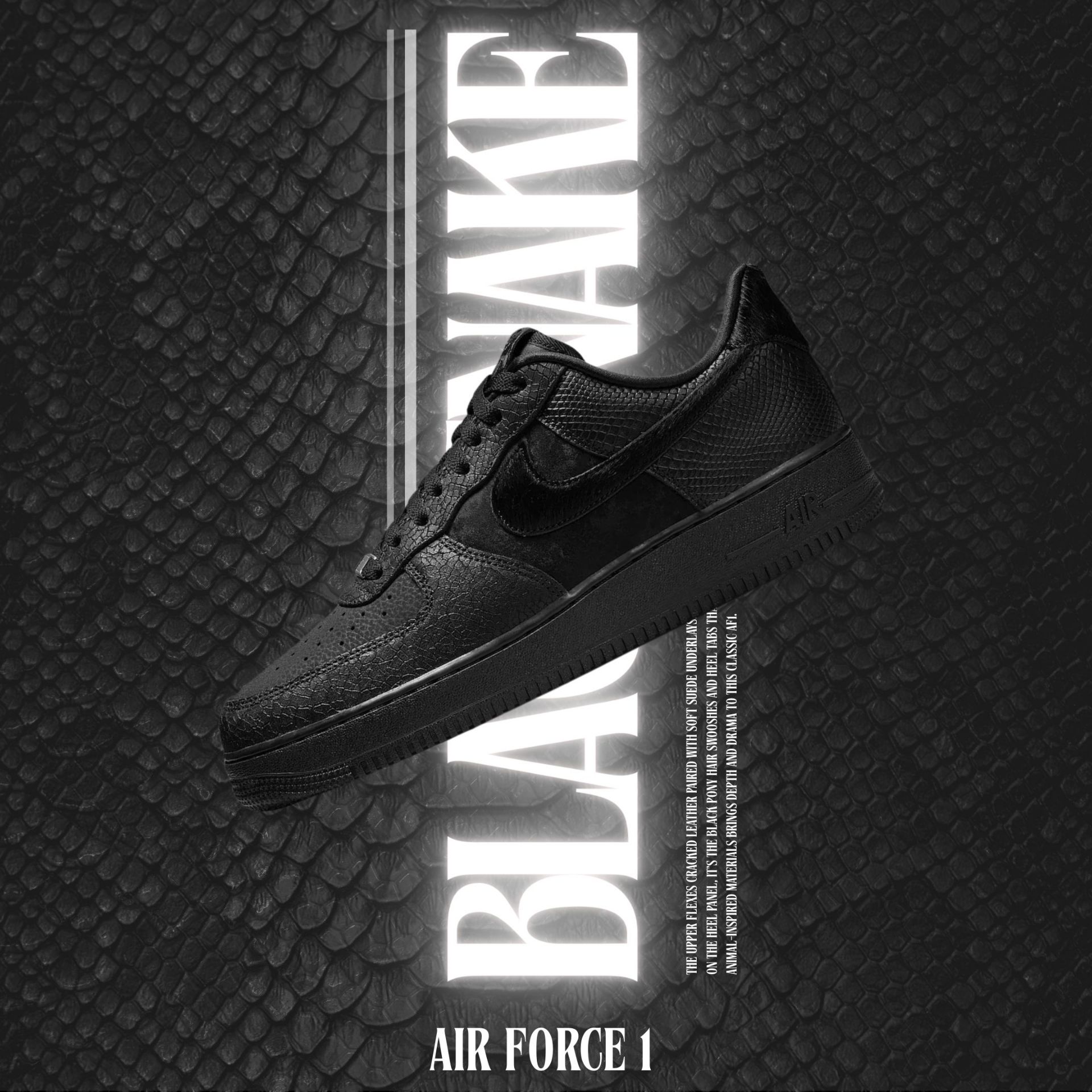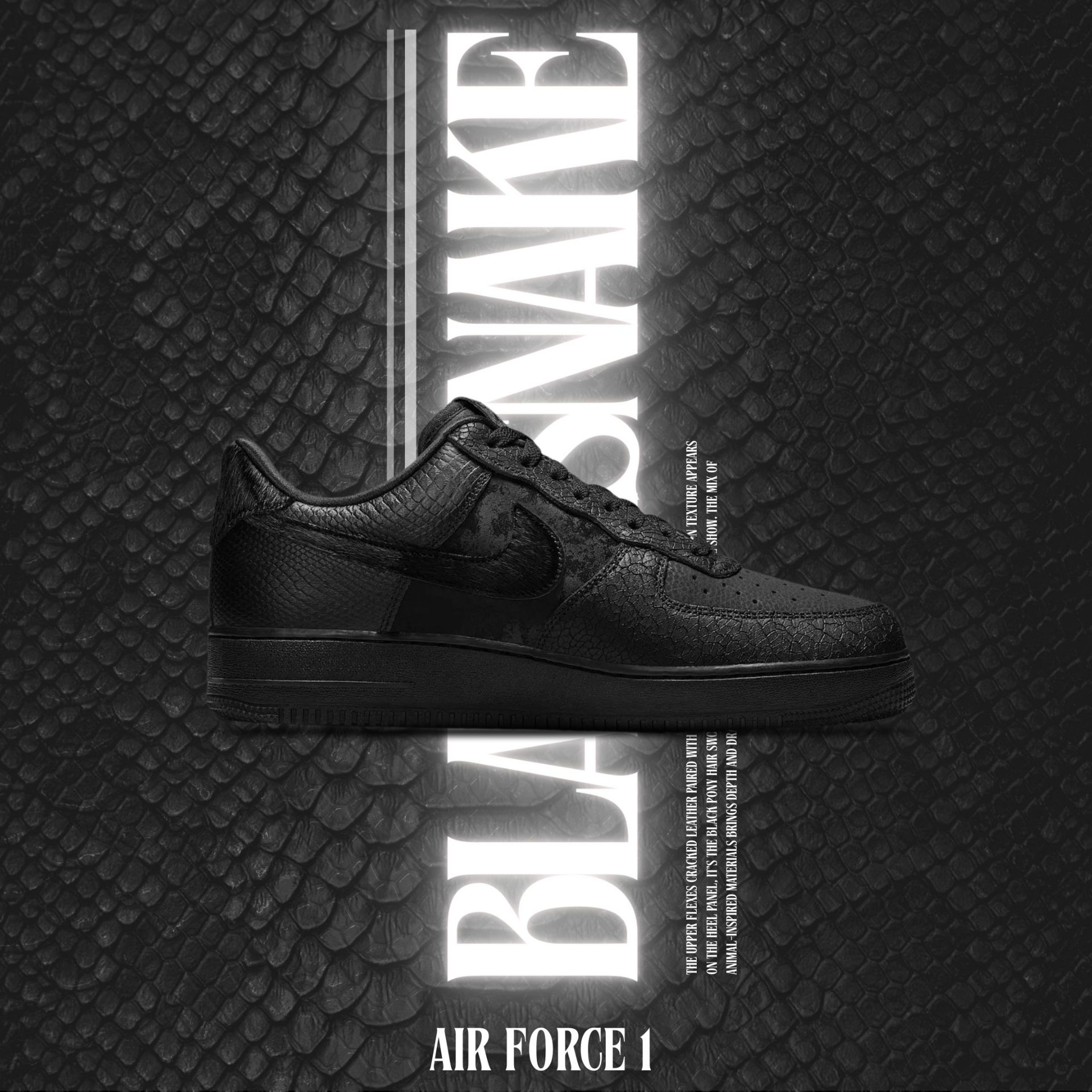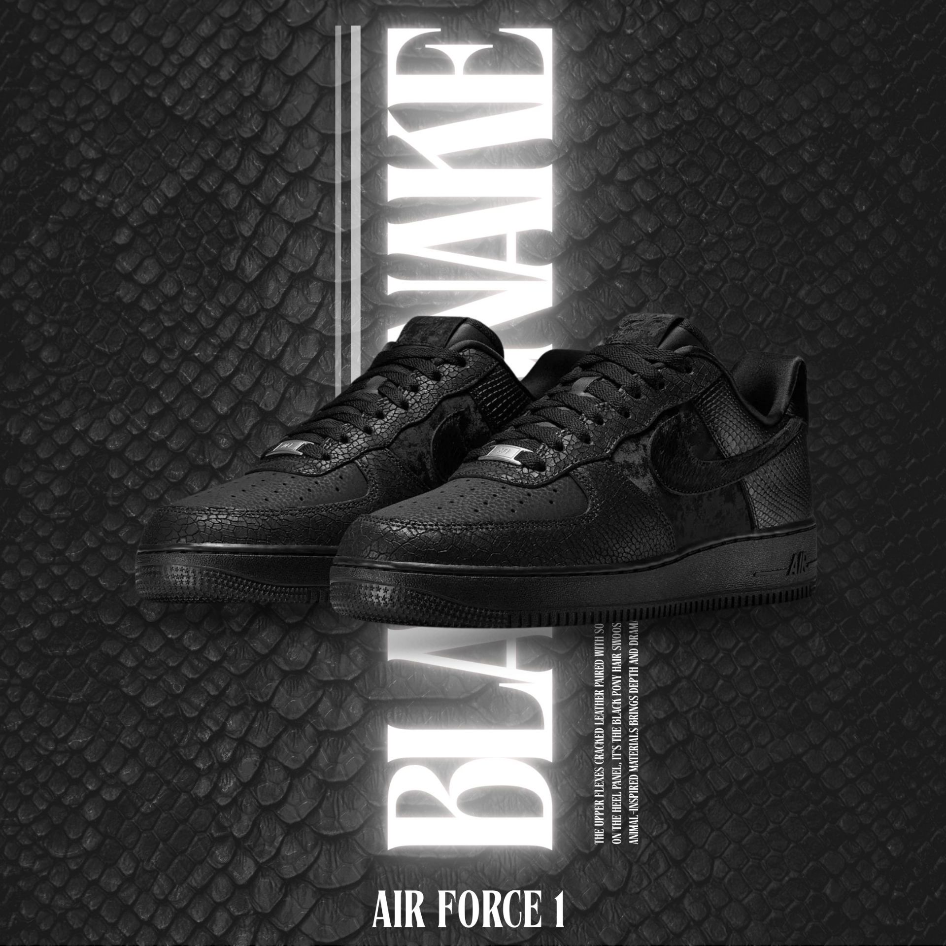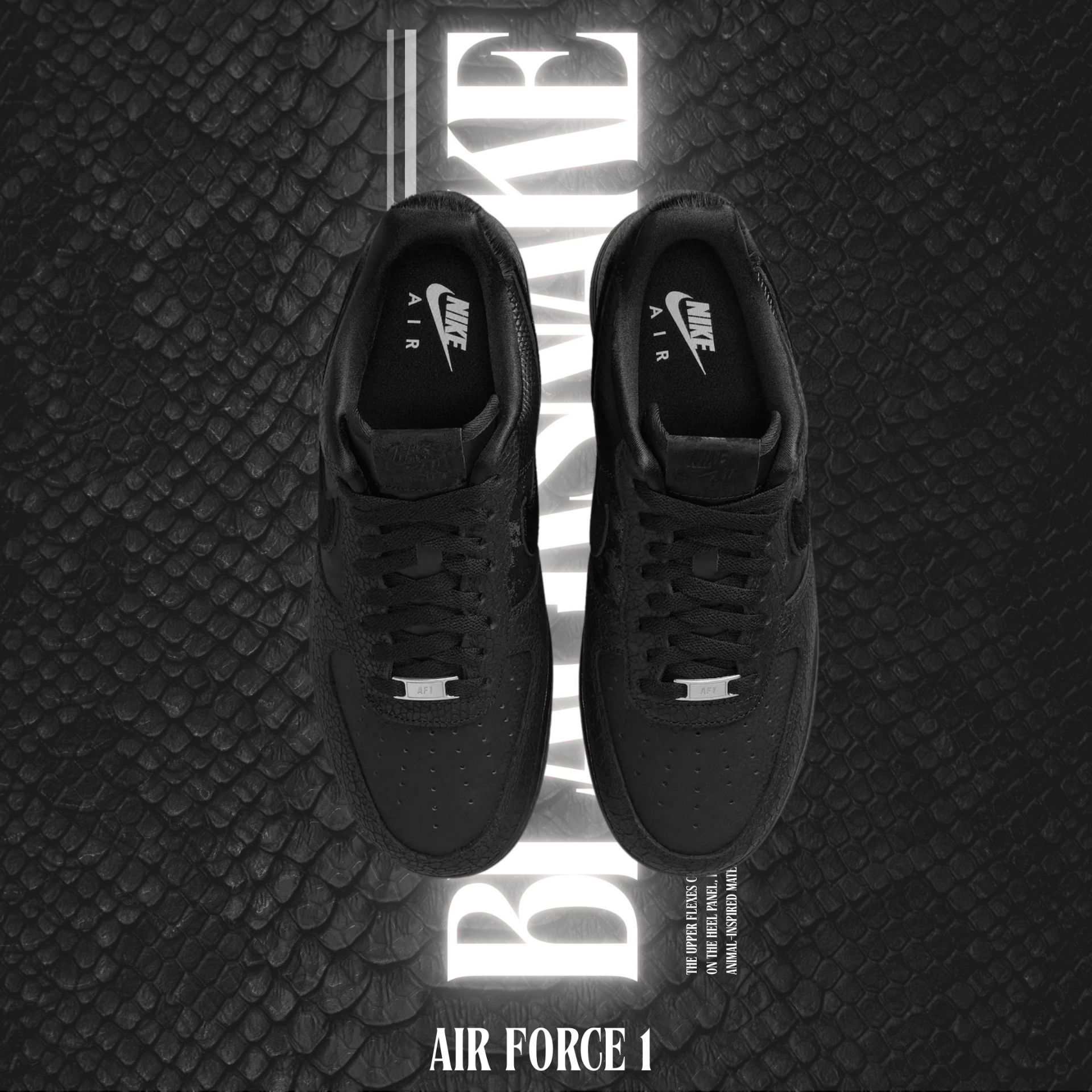 NICEDAY 現貨 Nike Air Force 1 黑曼巴 黑蛇 蛇 蛇紋 蛇皮 黑 黑魂 HQ1977-001