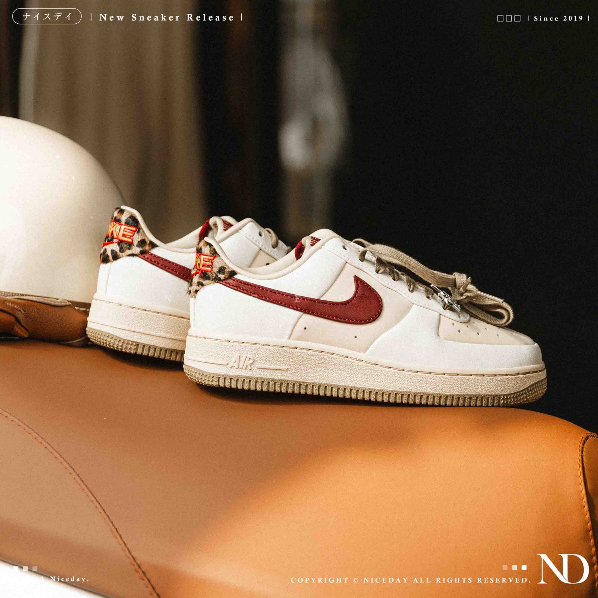 NICEDAY 現貨 Nike Air Force 1 '07 豹紋 米紅 米白 復古 女鞋 IM7510-262