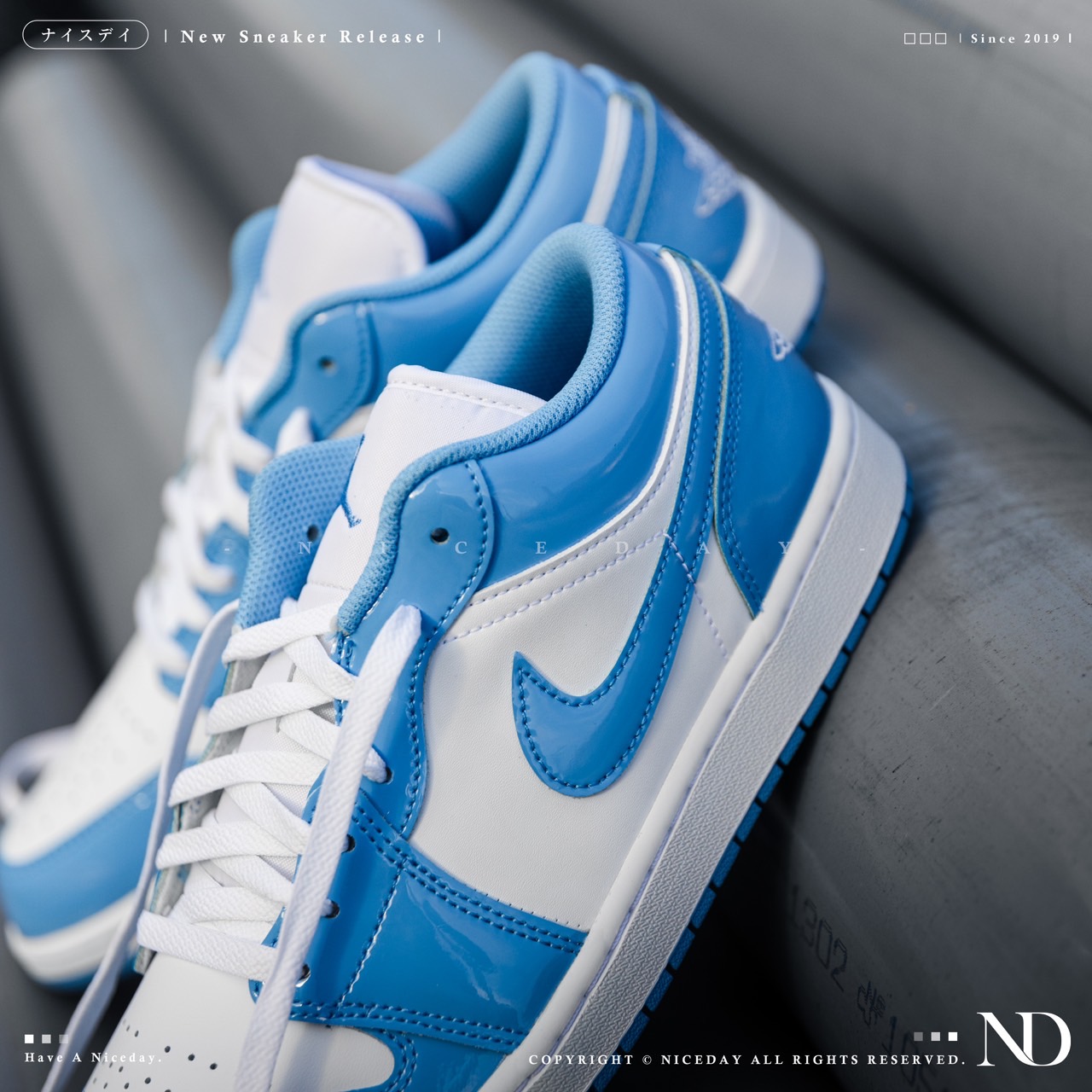NICEDAY 現貨 Air Jordan 1 Low 北卡藍 漆皮 男款 FZ2138-114