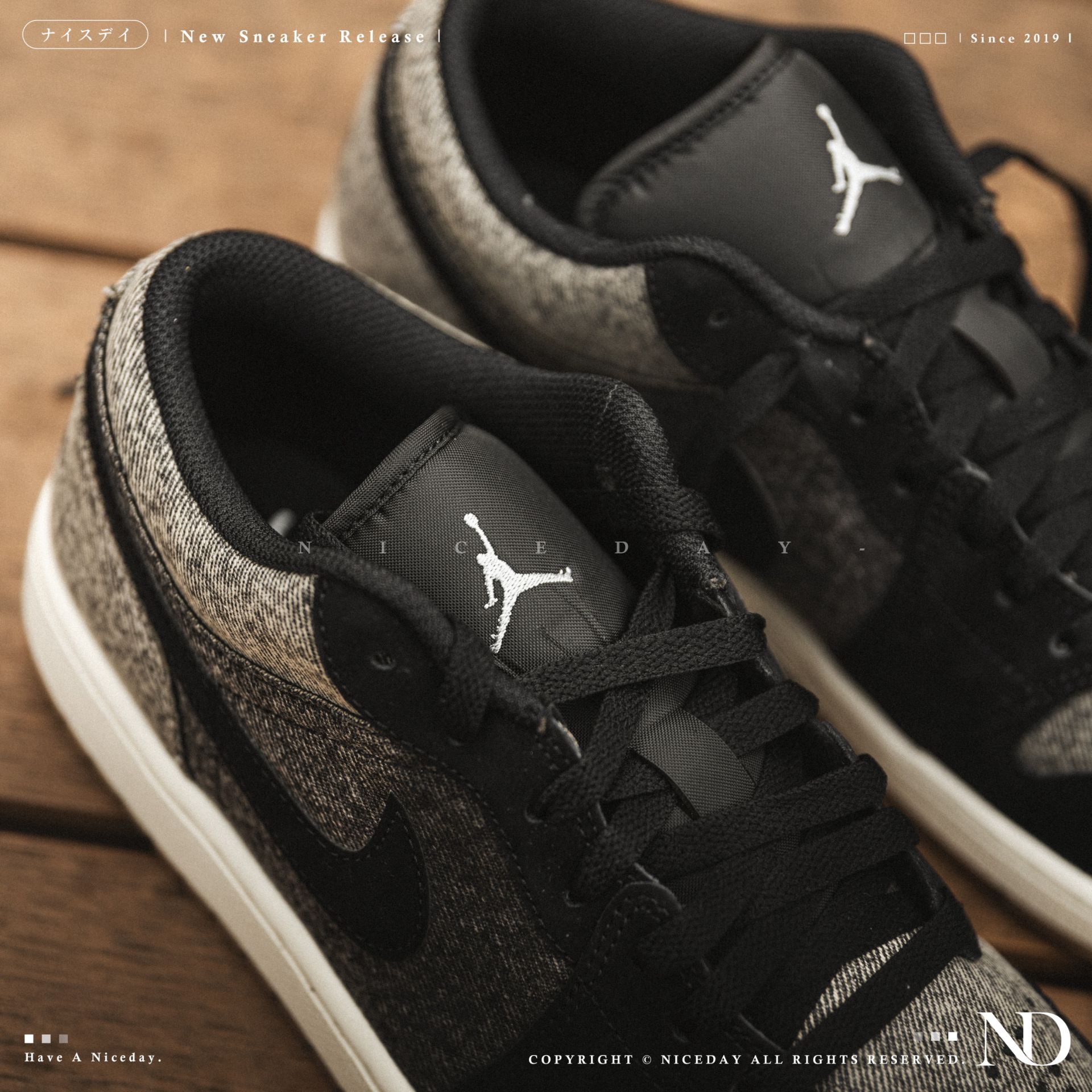 NICEDAY 現貨 Air Jordan 1 Low 黑灰 單寧 男款 HJ4360-001