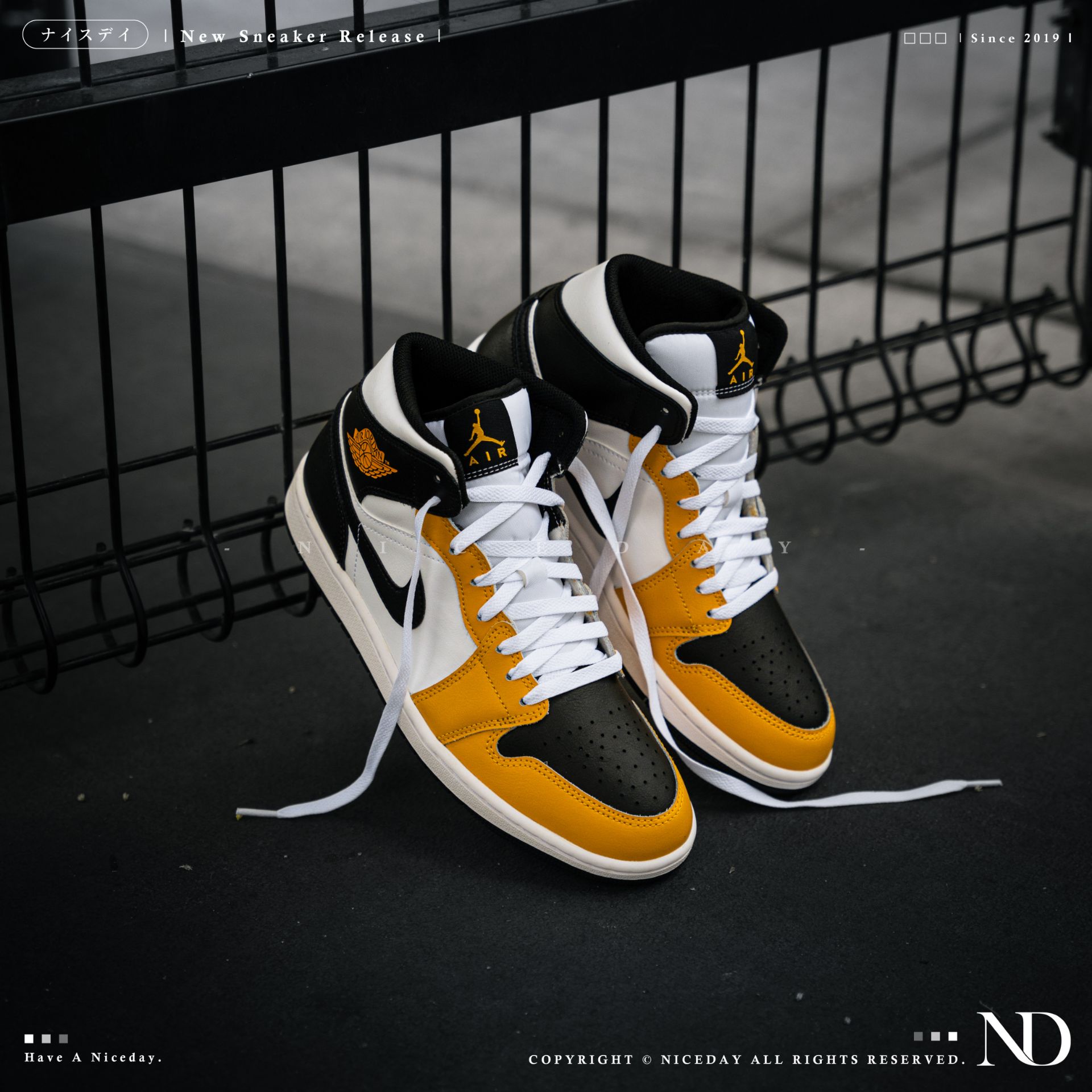 NICEDAY 現貨 Air Jordan 1 Mid 武當 黑黃 計程車 黑白黃 男款 DQ8462-701