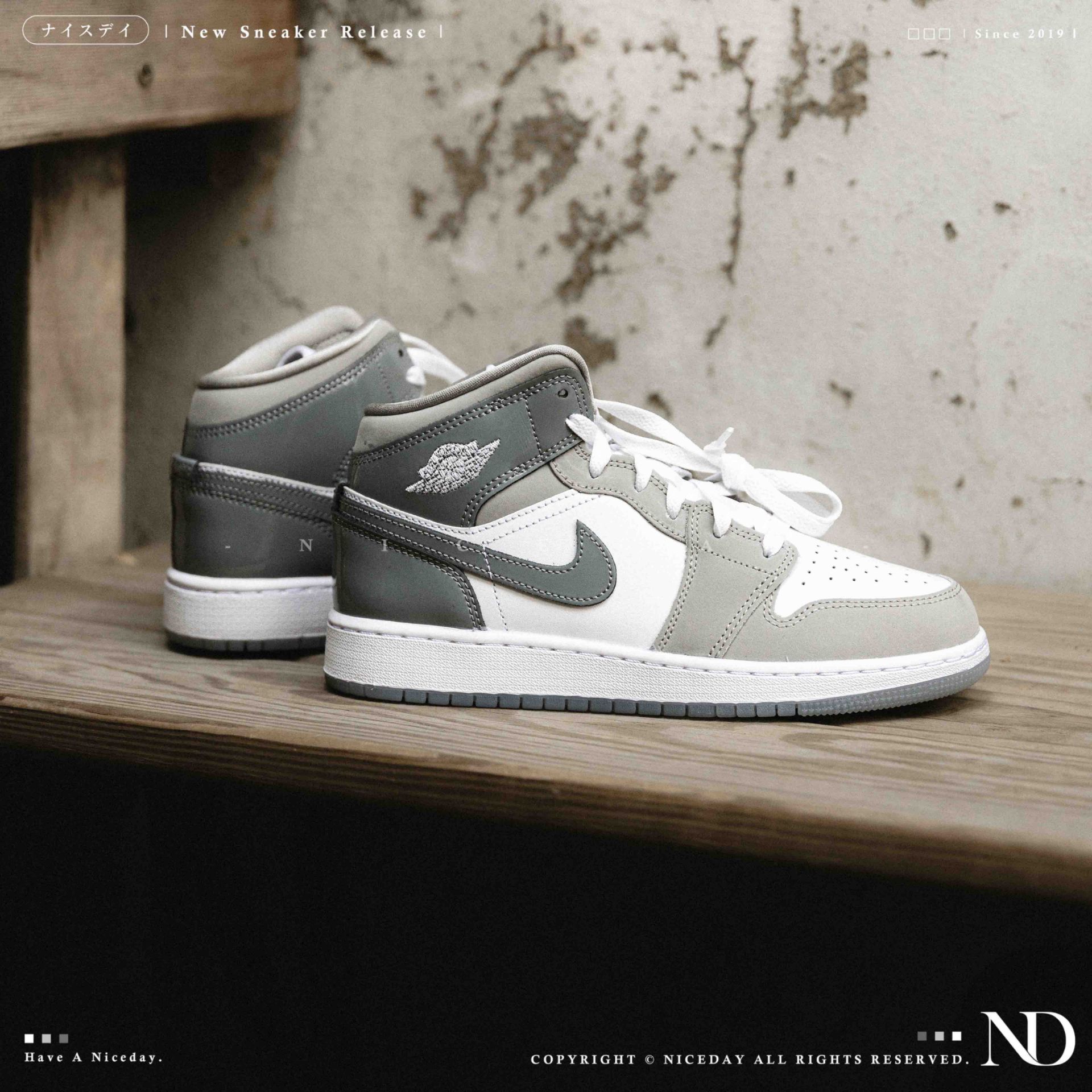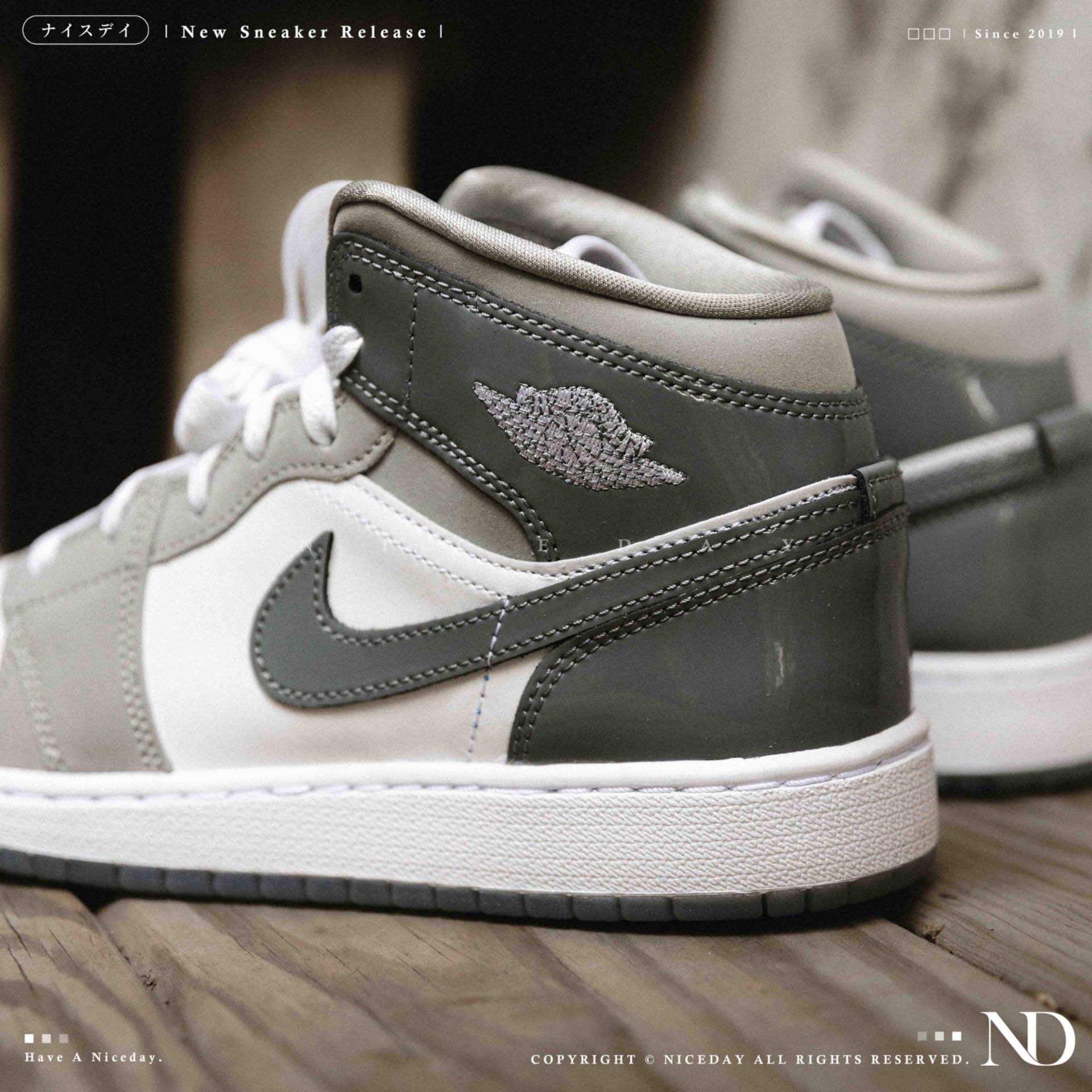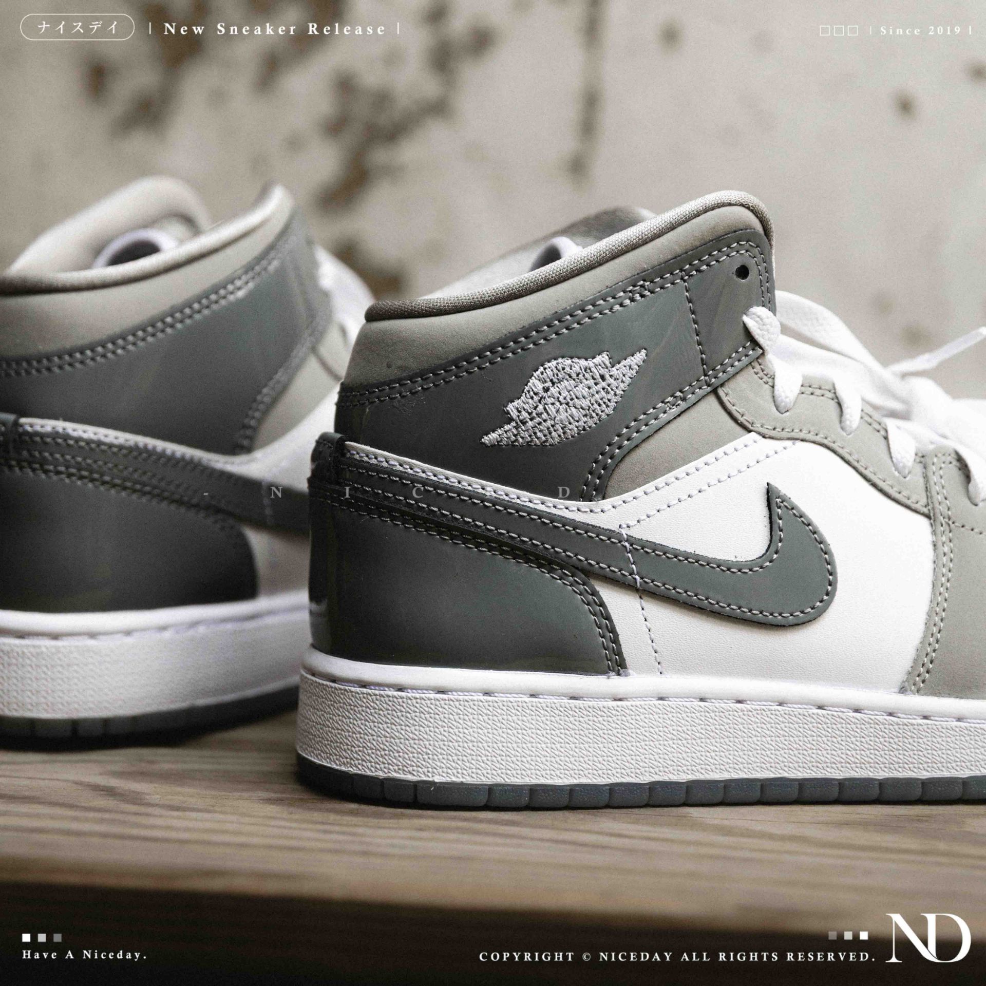 NICEDAY 現貨 Air Jordan 1 MID GS 灰白 漆皮 卡其灰 大童 女鞋 HF3193-100