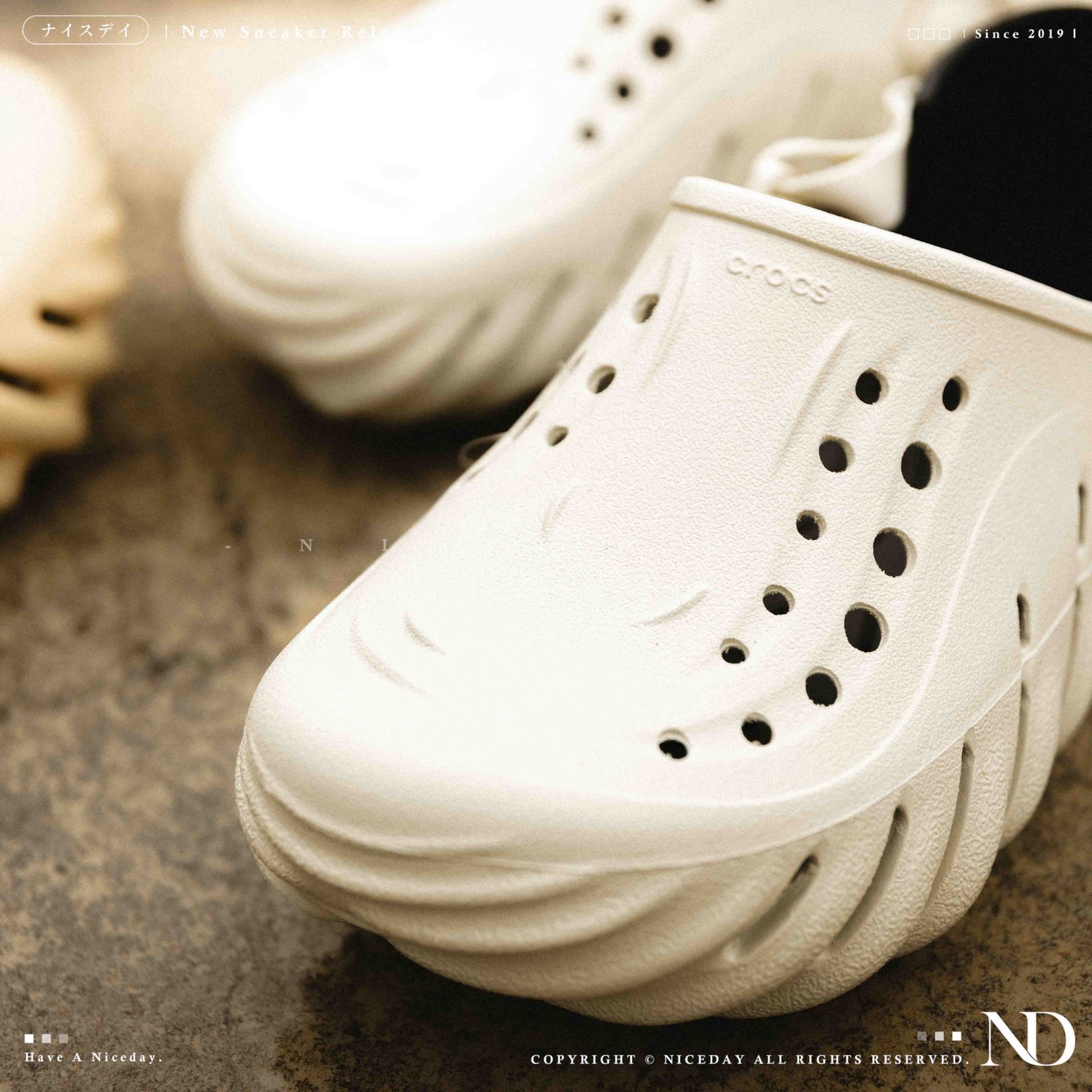 NICEDAY 現貨 Crocs 卡駱馳 Echo 波波 沙暴 洞洞鞋 流線 米白 米色 骨白 207937-2YJ