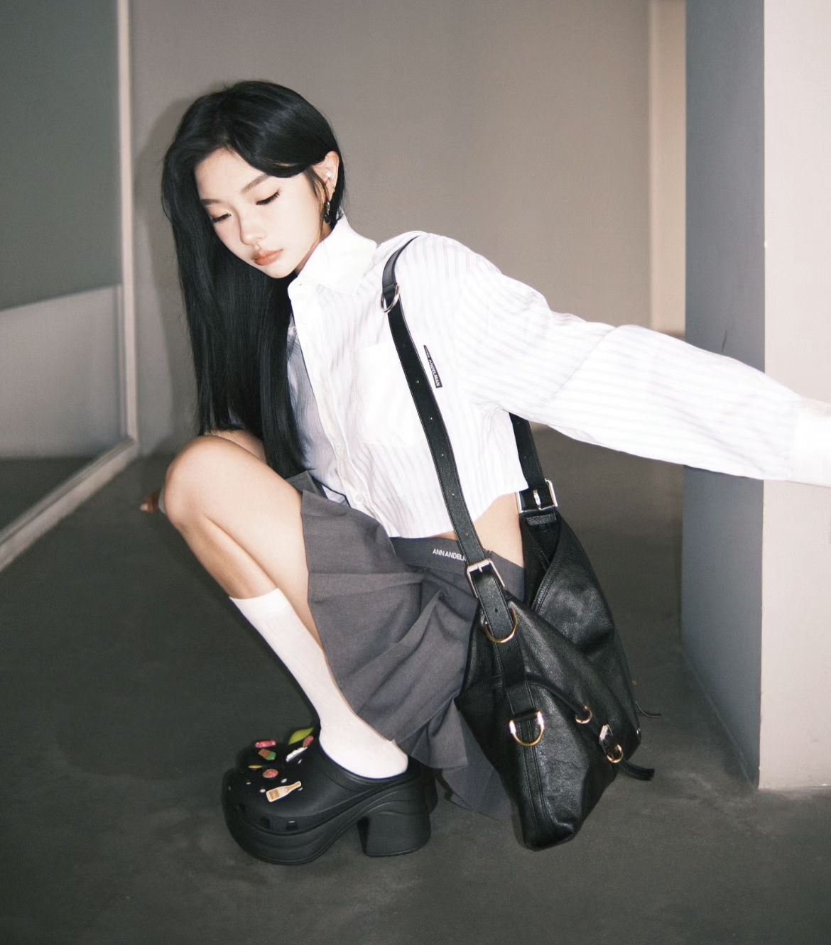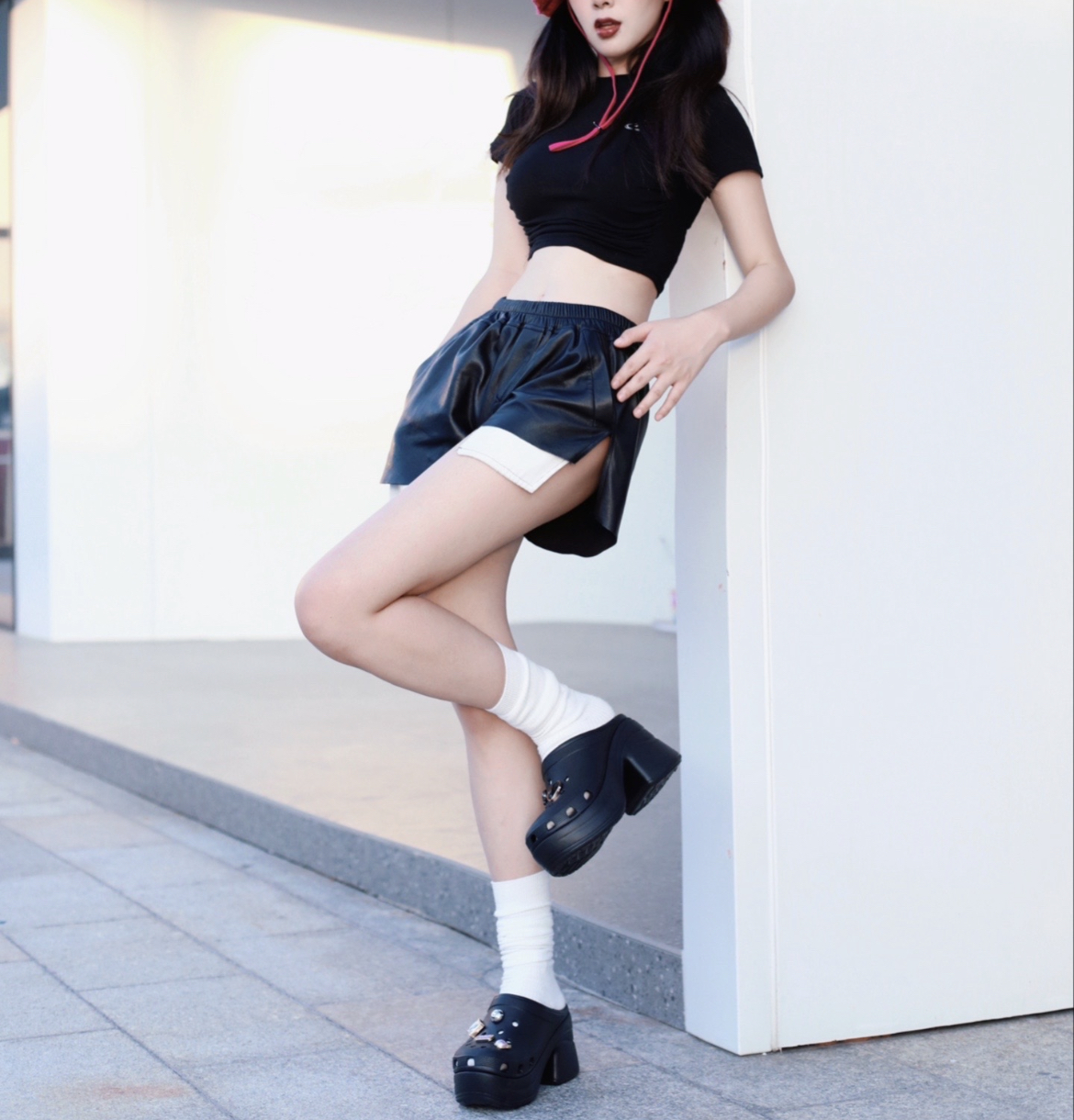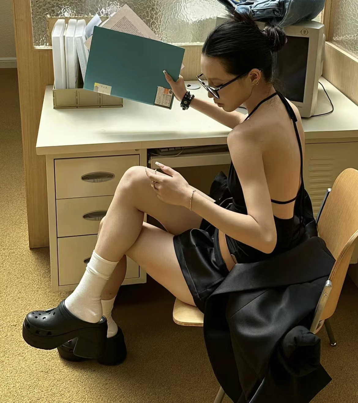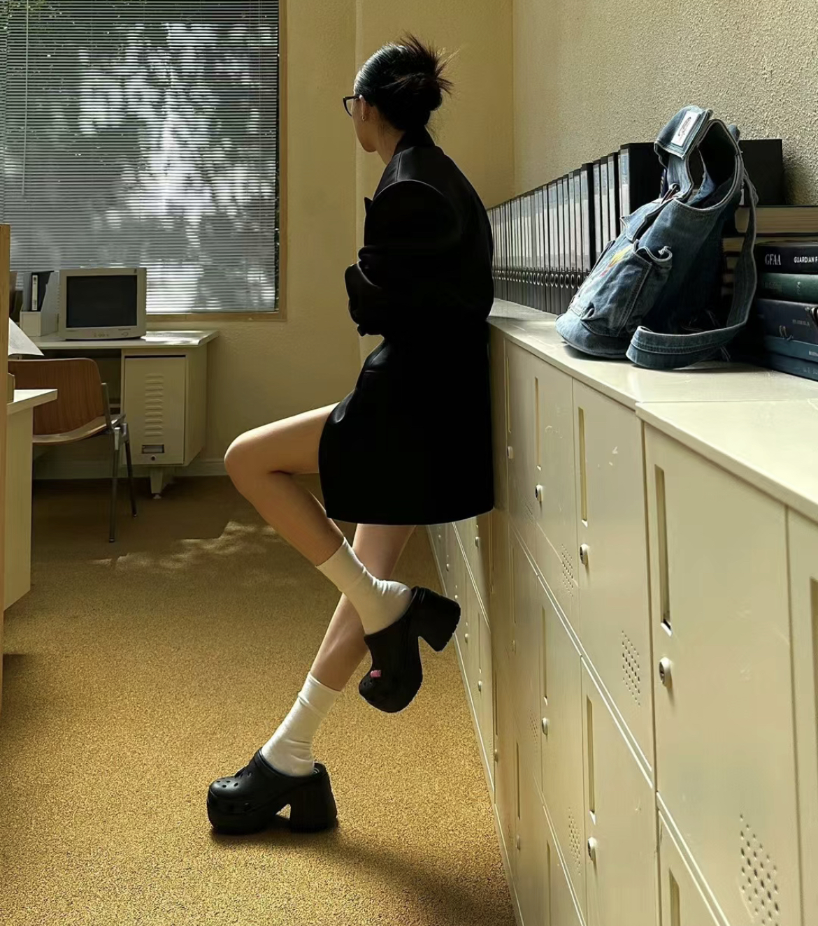 NICEDAY 現貨 Crocs Classic Crush 人魚 洞洞鞋 厚底 高跟 增高 黑