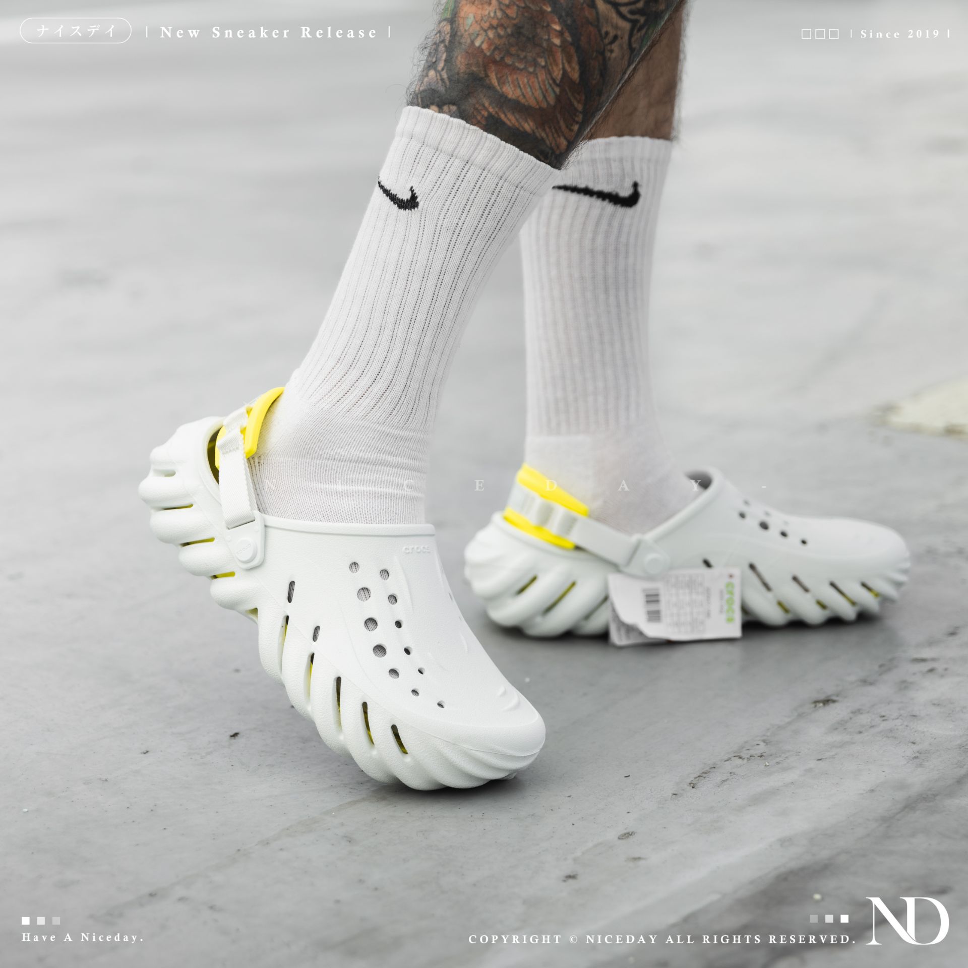 NICEDAY 現貨 Crocs Classic Crush 波波 洞洞鞋 厚底 踩屎感 白色