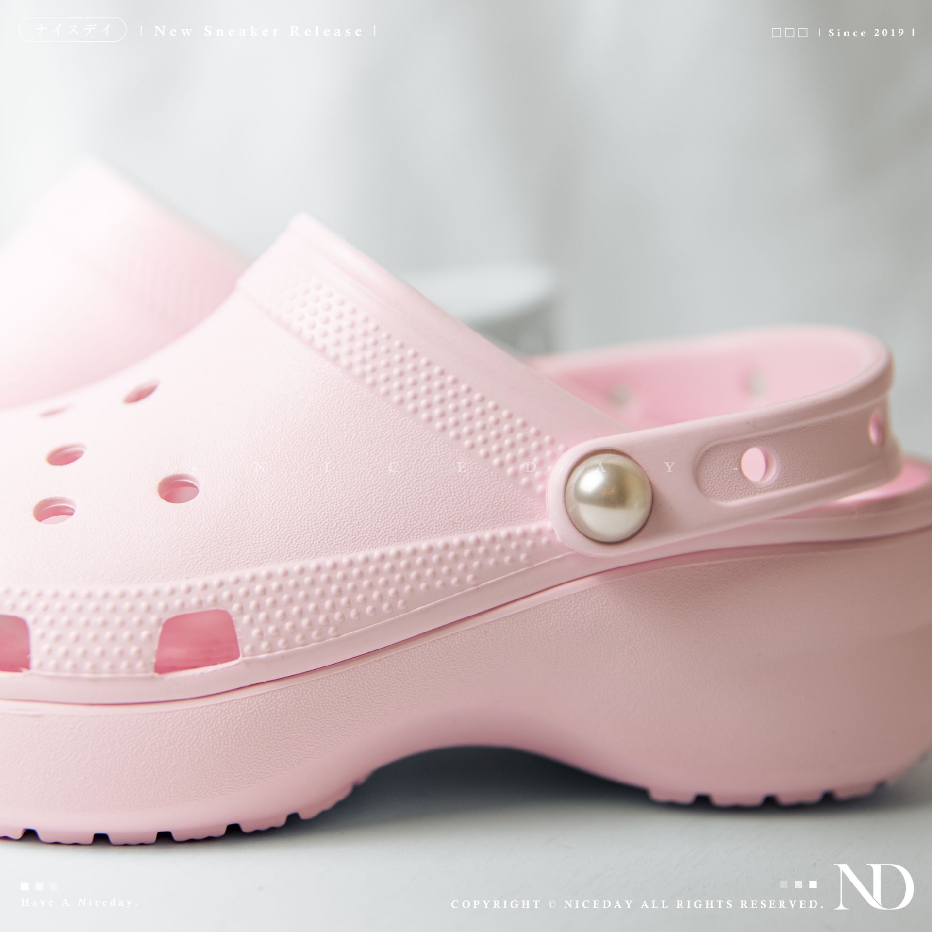 NICEDAY 現貨 Crocs Classic Crush 洞洞鞋 厚底 踩屎感 粉色 女款 211231-6ZW