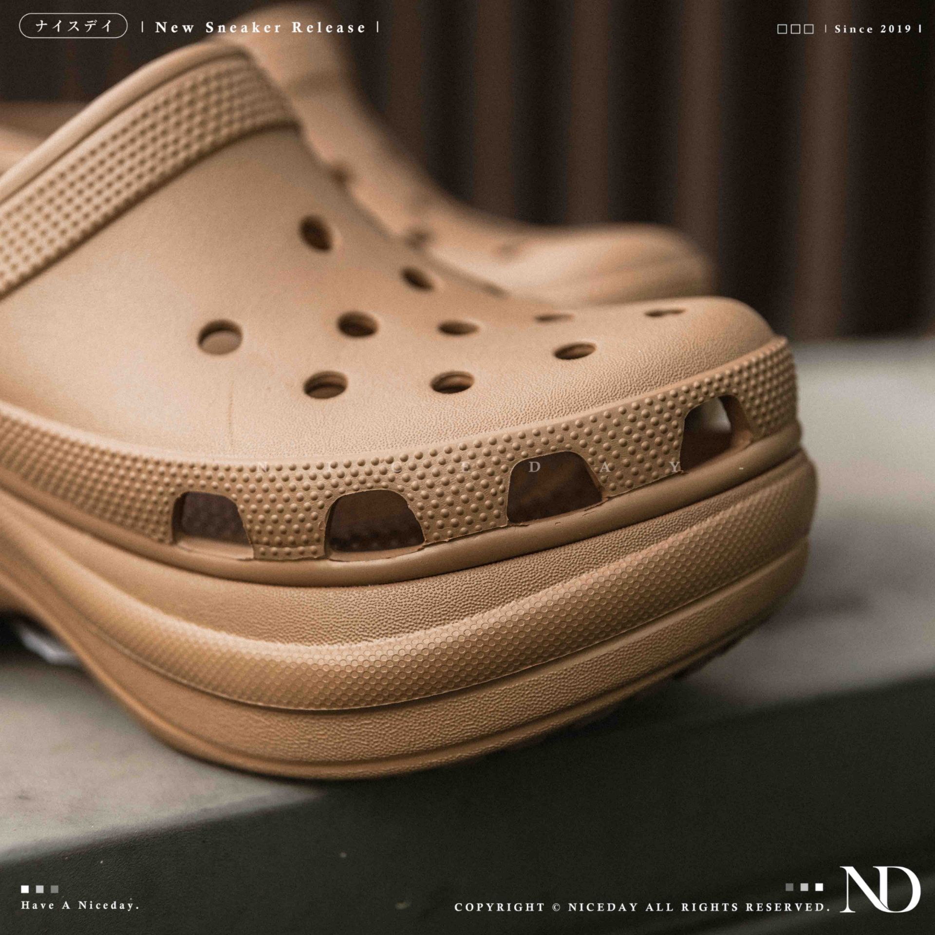NICEDAY 現貨 Crocs Classic Crush 洞洞鞋 厚底 踩屎感 鯨魚 棕色 可可 增高 206302-2JJ