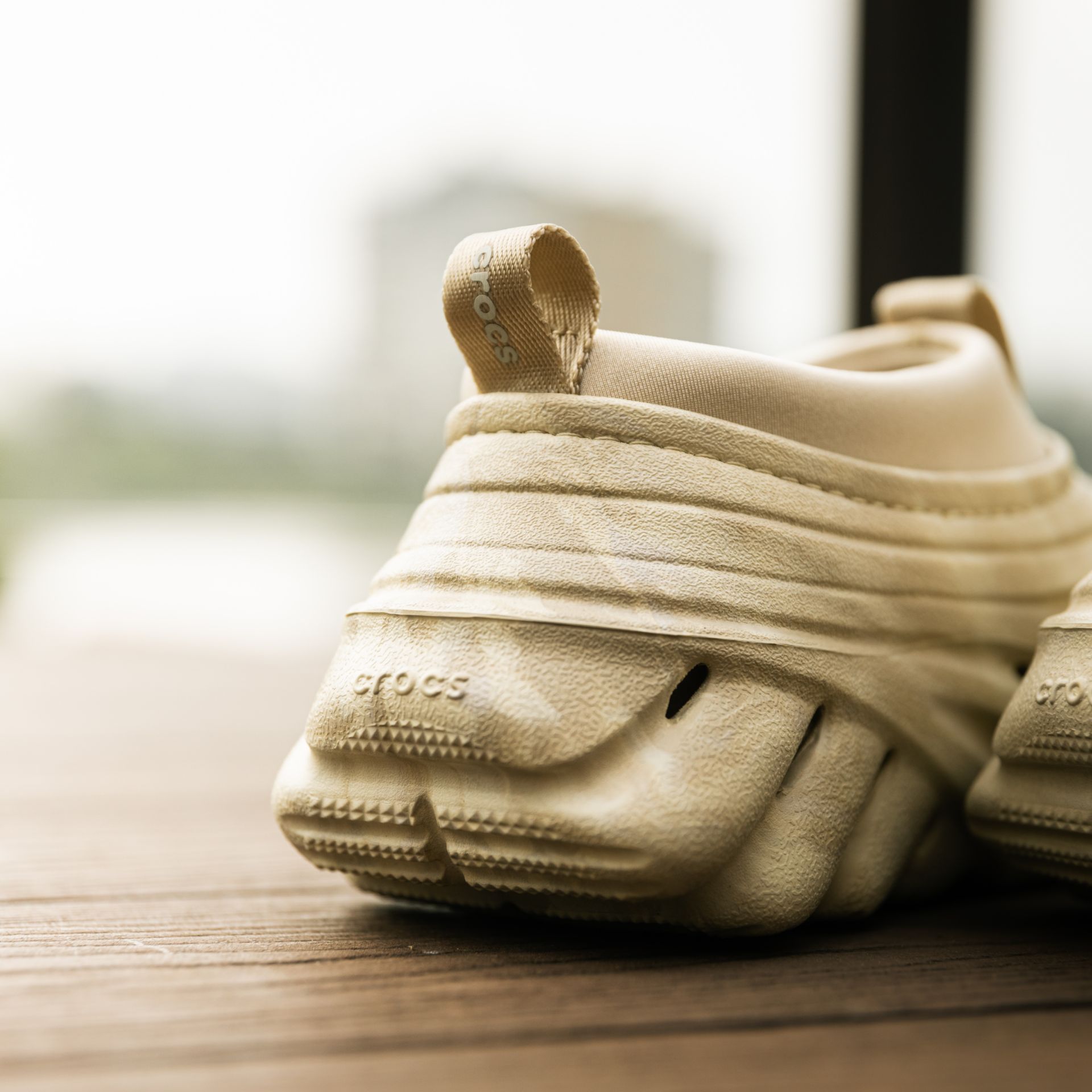 NICEDAY 現貨 Crocs Classic Crush 洞洞鞋 暴風波波 階梯 厚底 踩屎感 白沙色