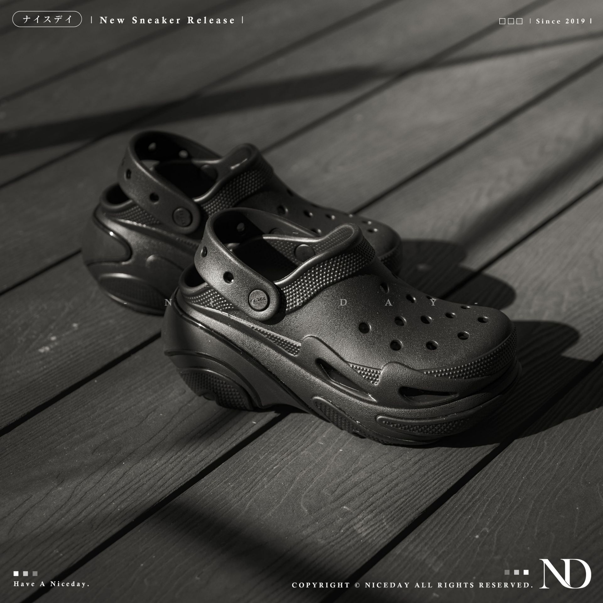 NICEDAY 現貨 Crocs Classic Crush 貝殼泡芙 黑 克駱格 洞洞鞋 厚底 210061-0WC
