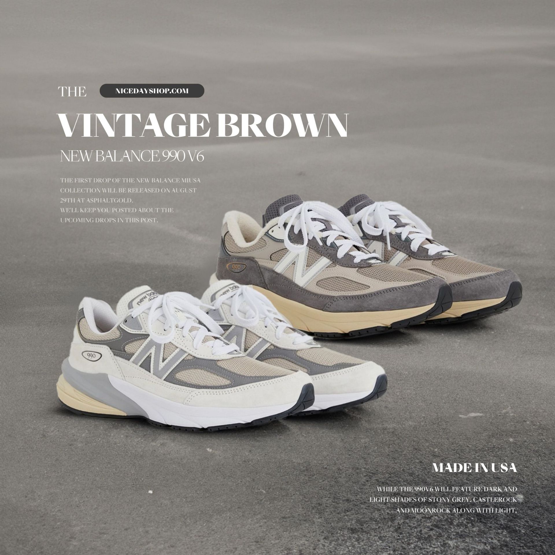 NICEDAY 現貨 New Balance 990 v6 海鹽灰 水泥灰 美製 U990NC6 男款