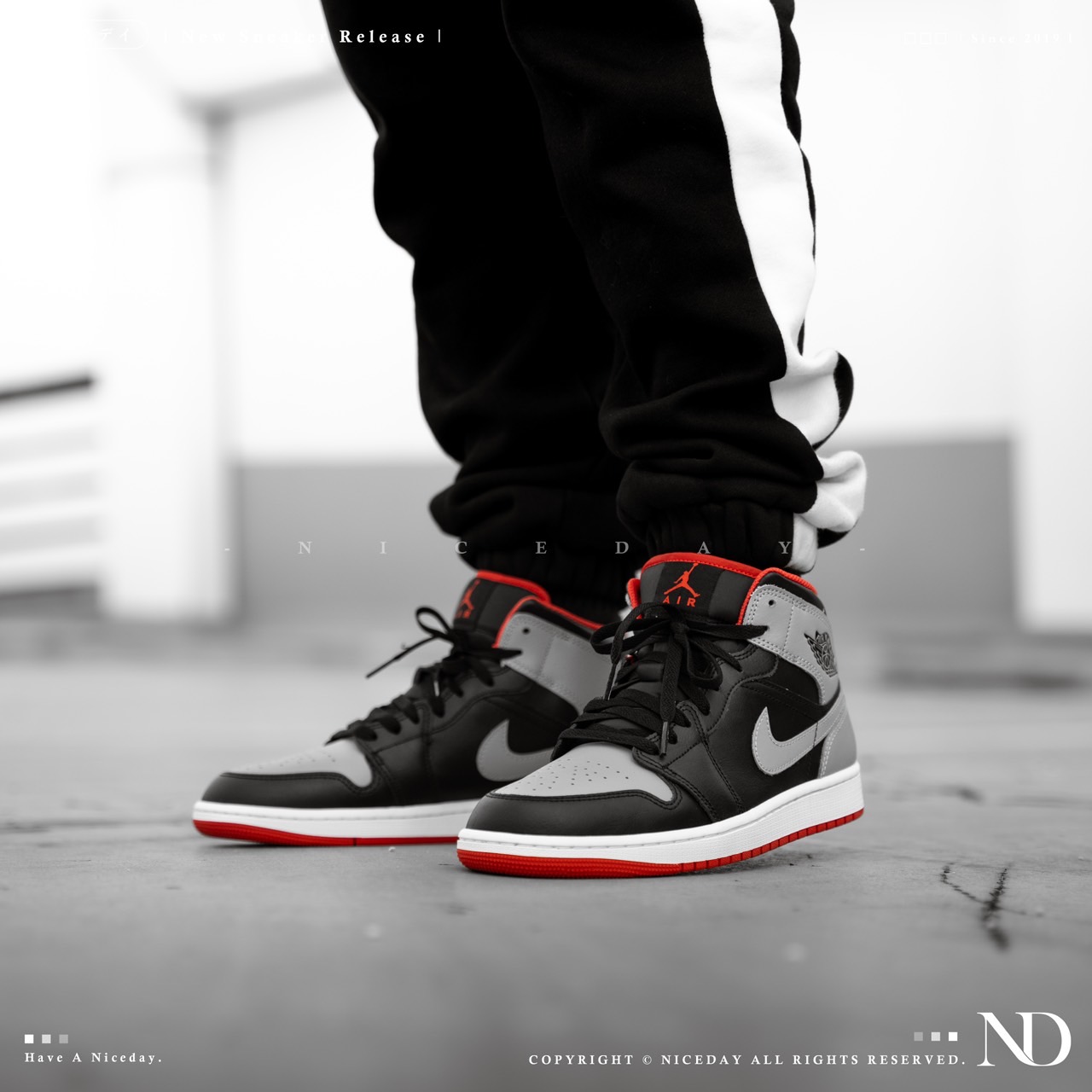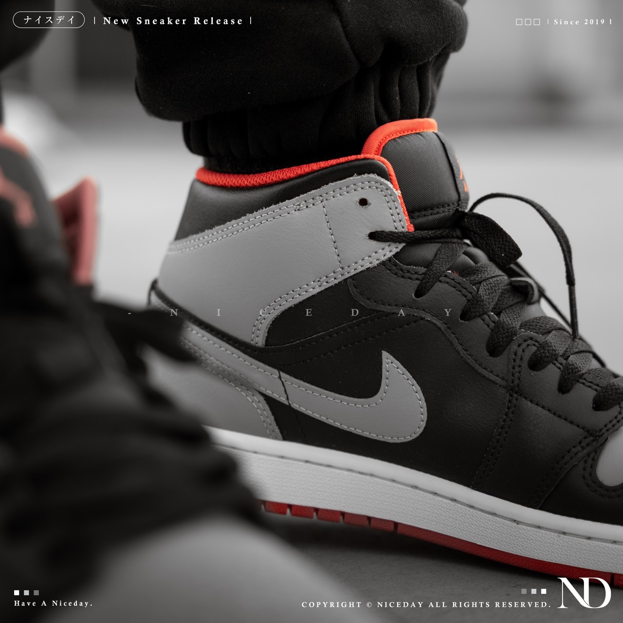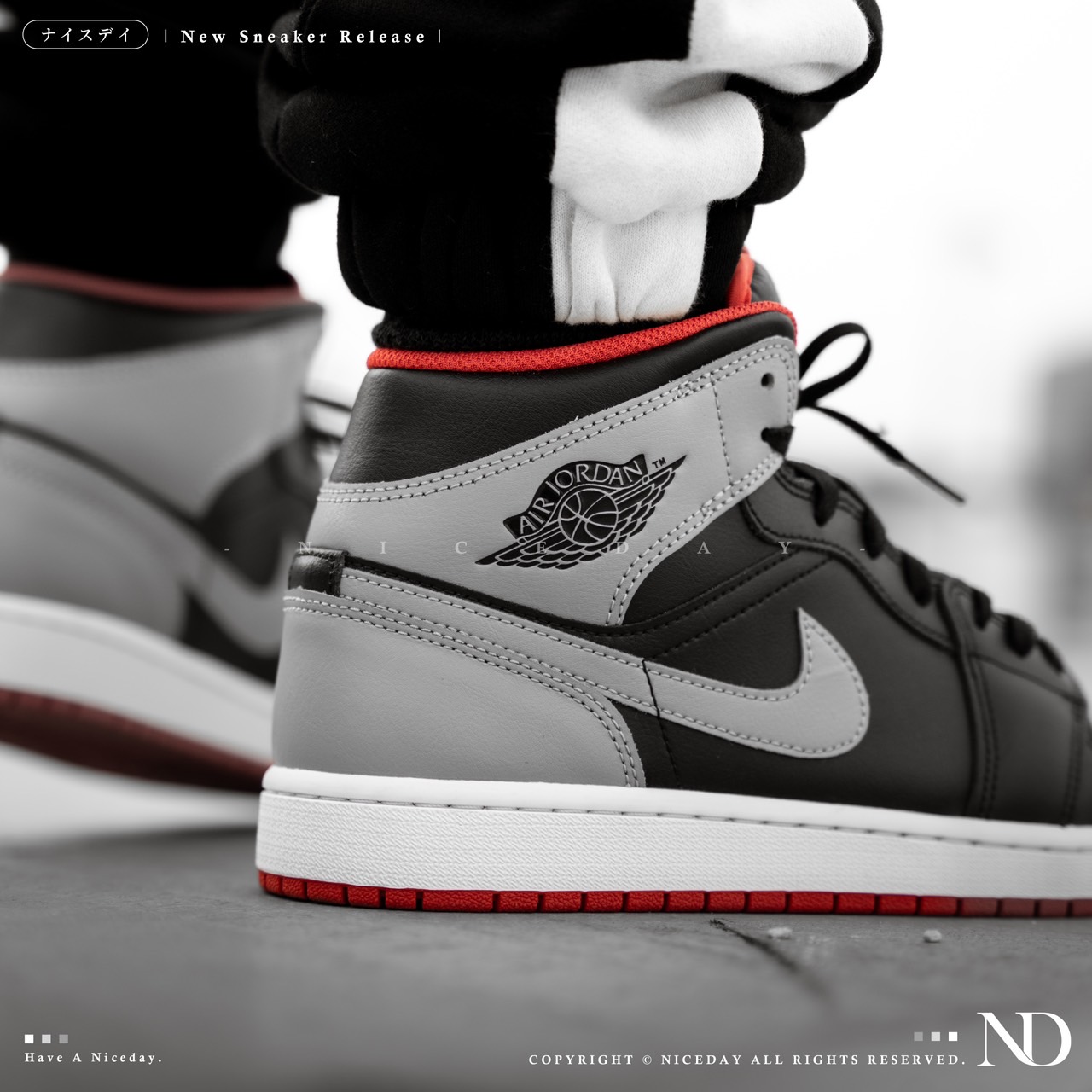 NICEDAY 現貨 Nike Air Jordan 1 Mid 黑灰紅 男款 高筒 DQ8426-006