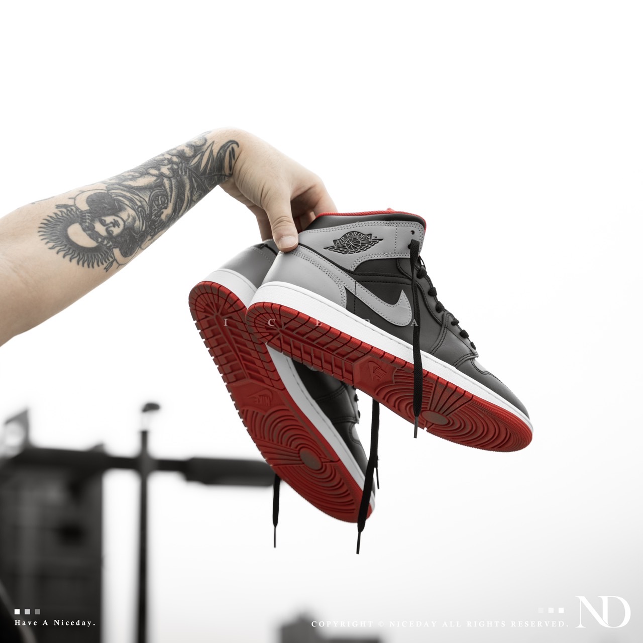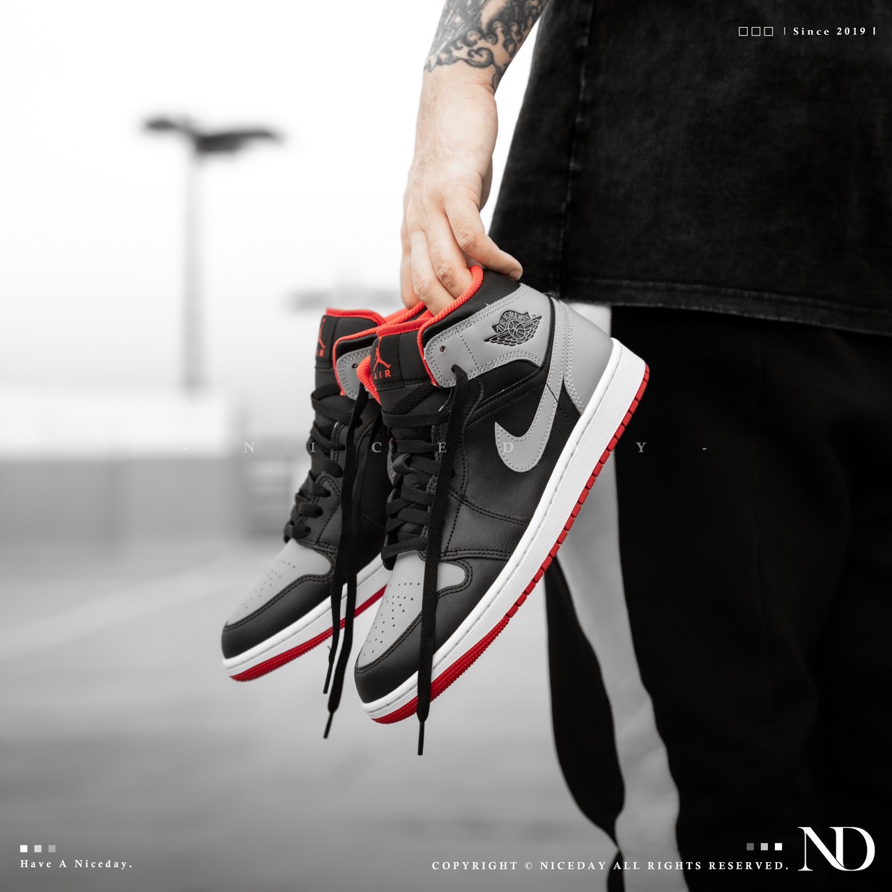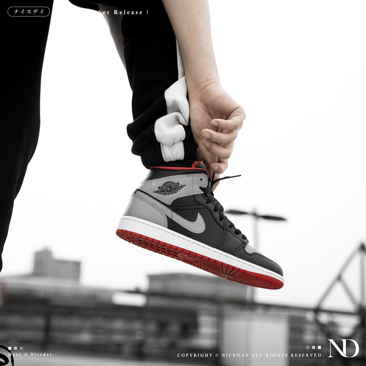NICEDAY 現貨 Nike Air Jordan 1 Mid 黑灰紅 男款 高筒 DQ8426-006
