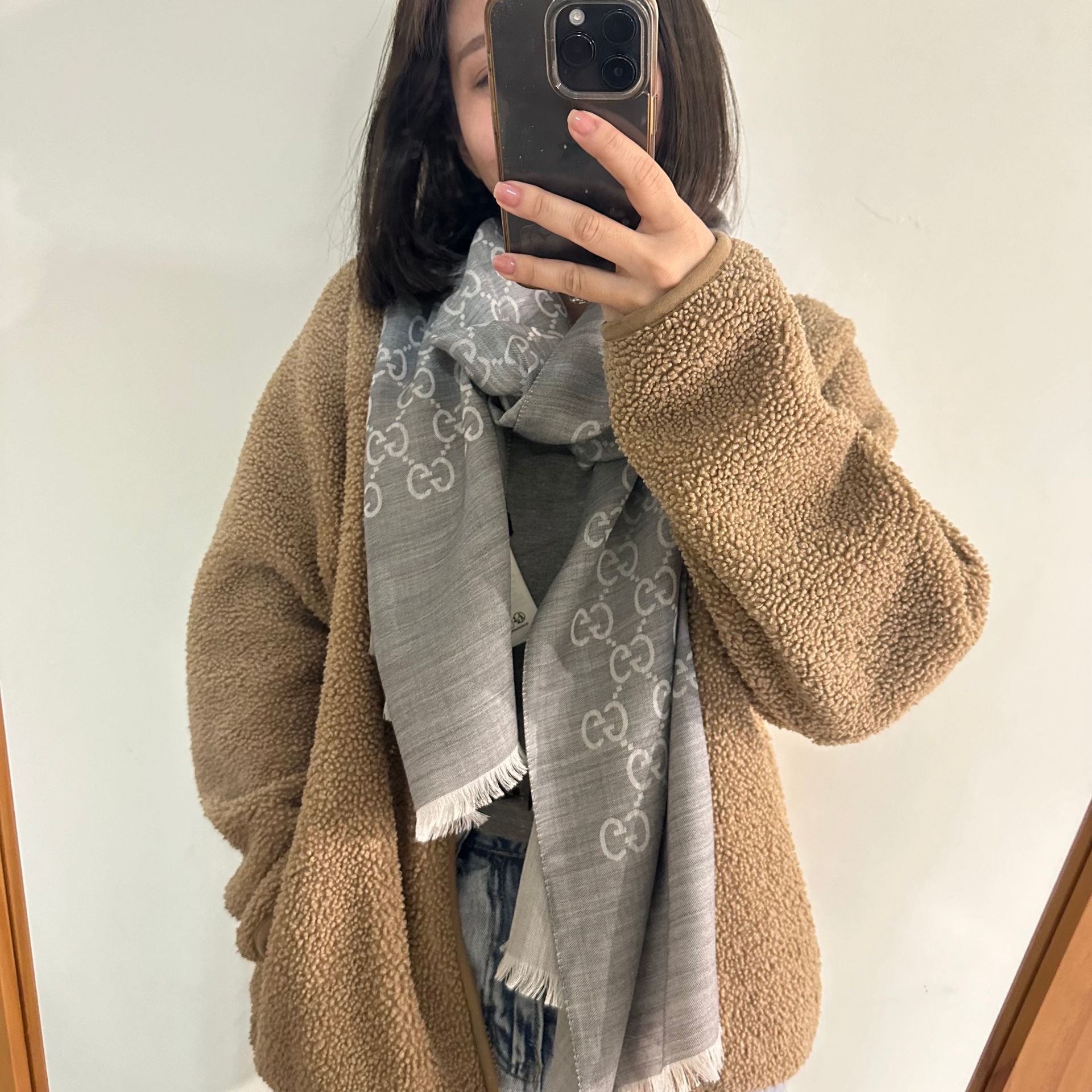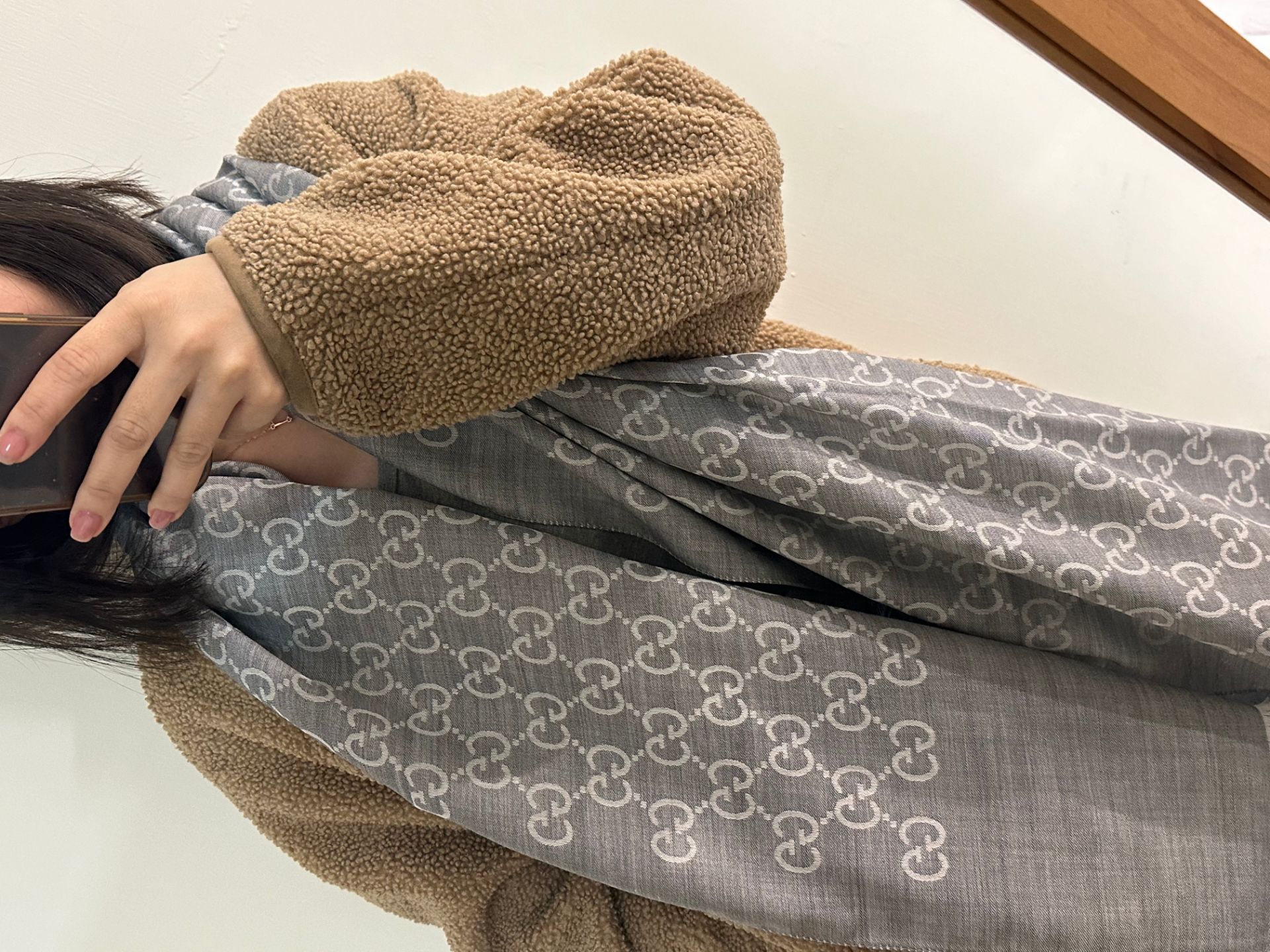 GUCCI GG Logo 雙色絲巾 /圍巾(淺灰/灰色)