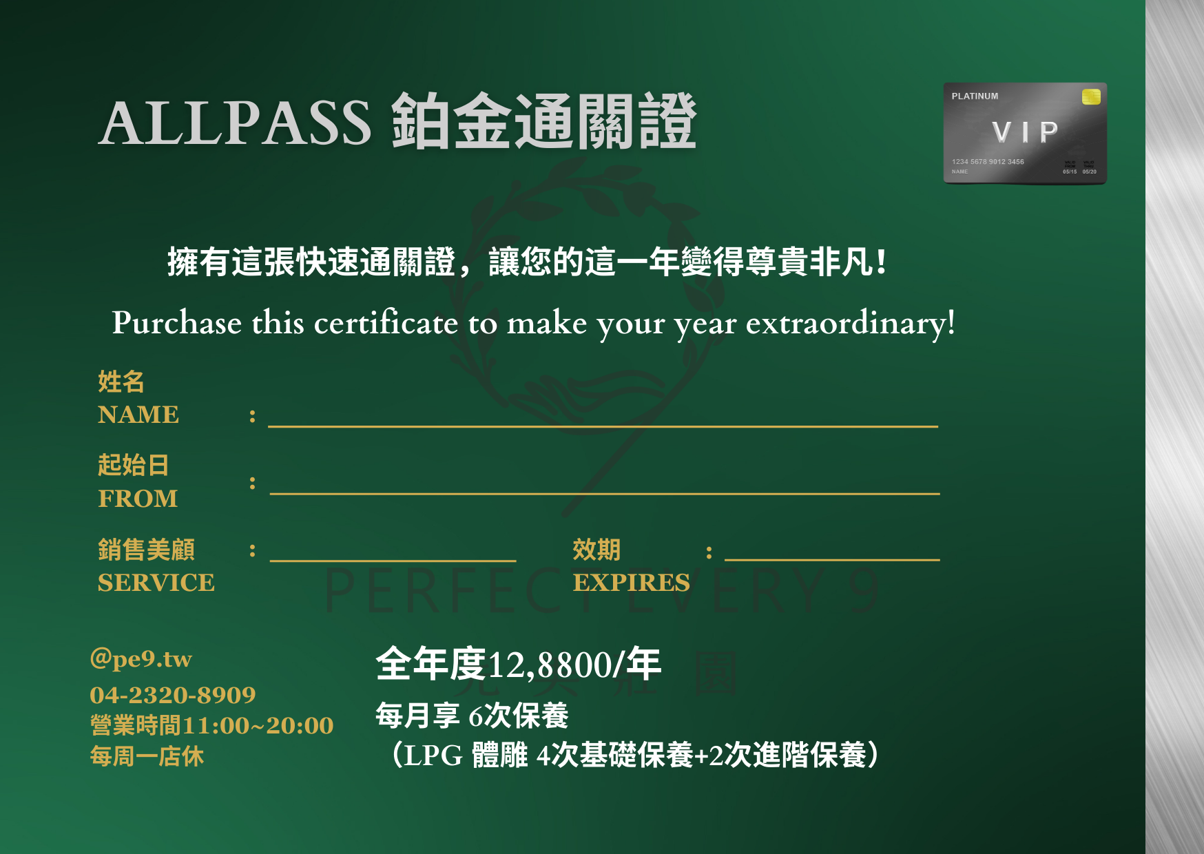 本方案屬限量發行,每年度限量50~60張,依照美容師接待量彈性開放,售完即止,恕不另行通知。