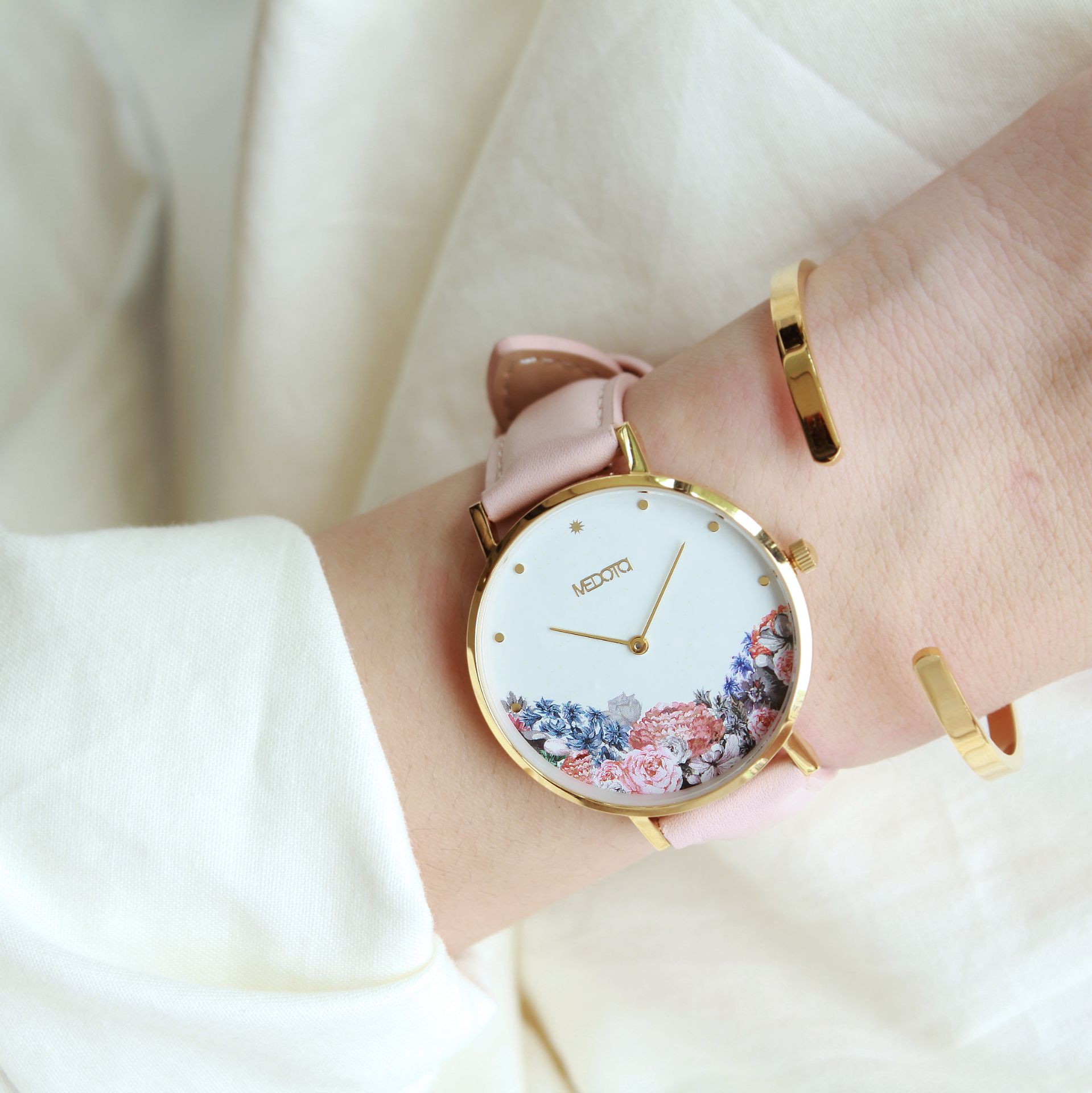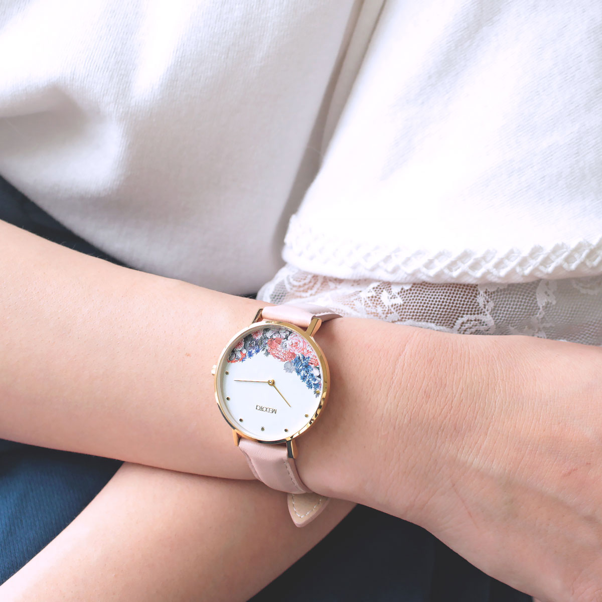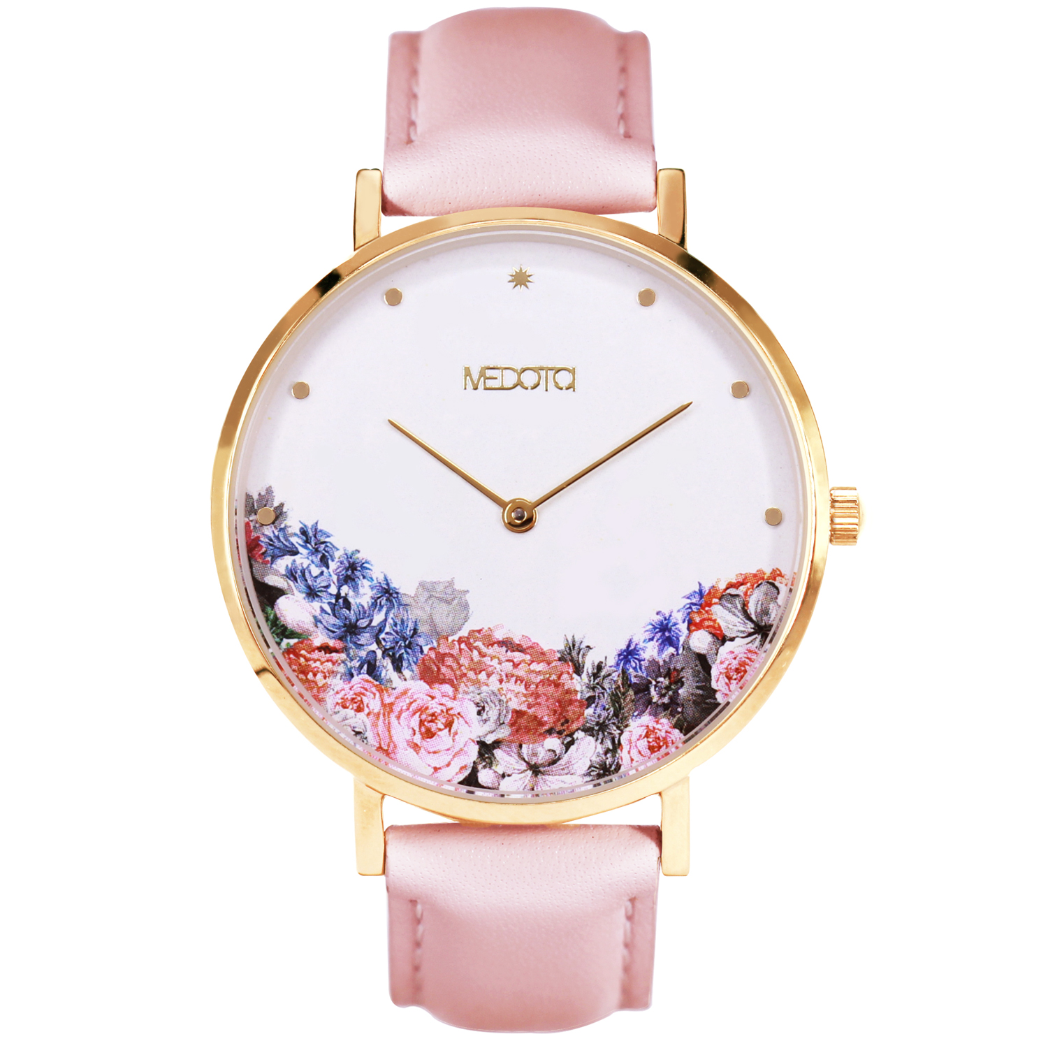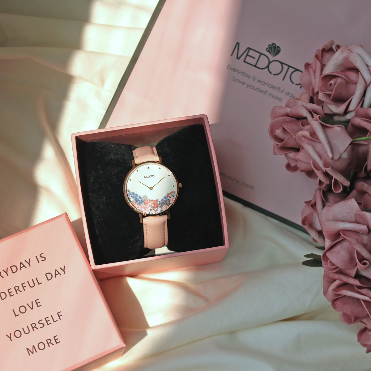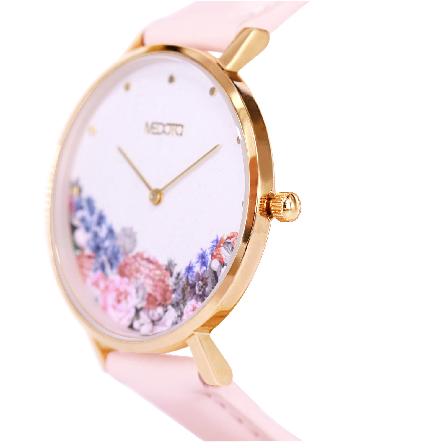 Blossom花朵系列粉色真皮錶帶女錶 / BO-8901