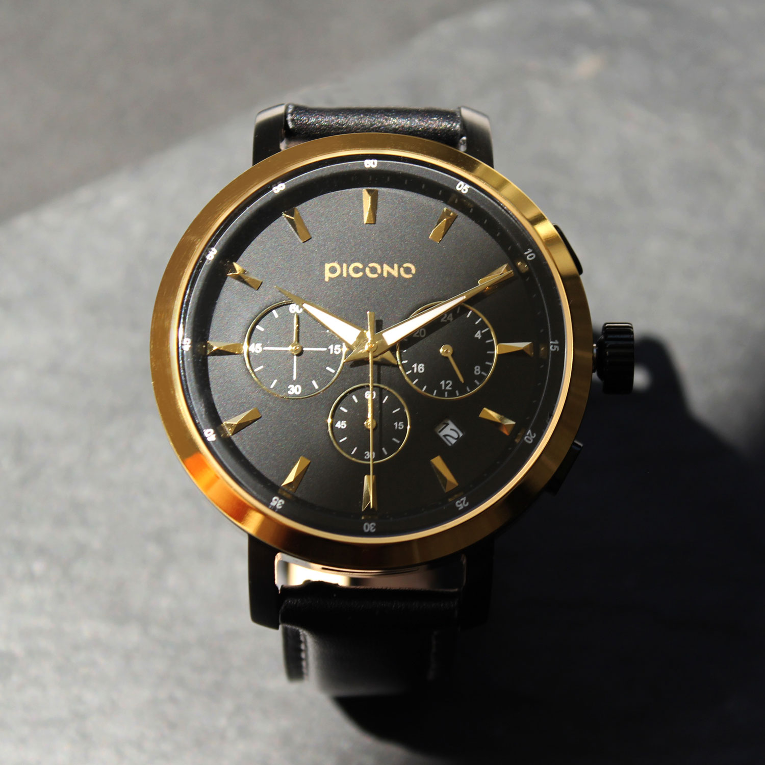 D-Time 真三眼多功能系列真皮錶帶手錶 DT-9201 金色/黑色