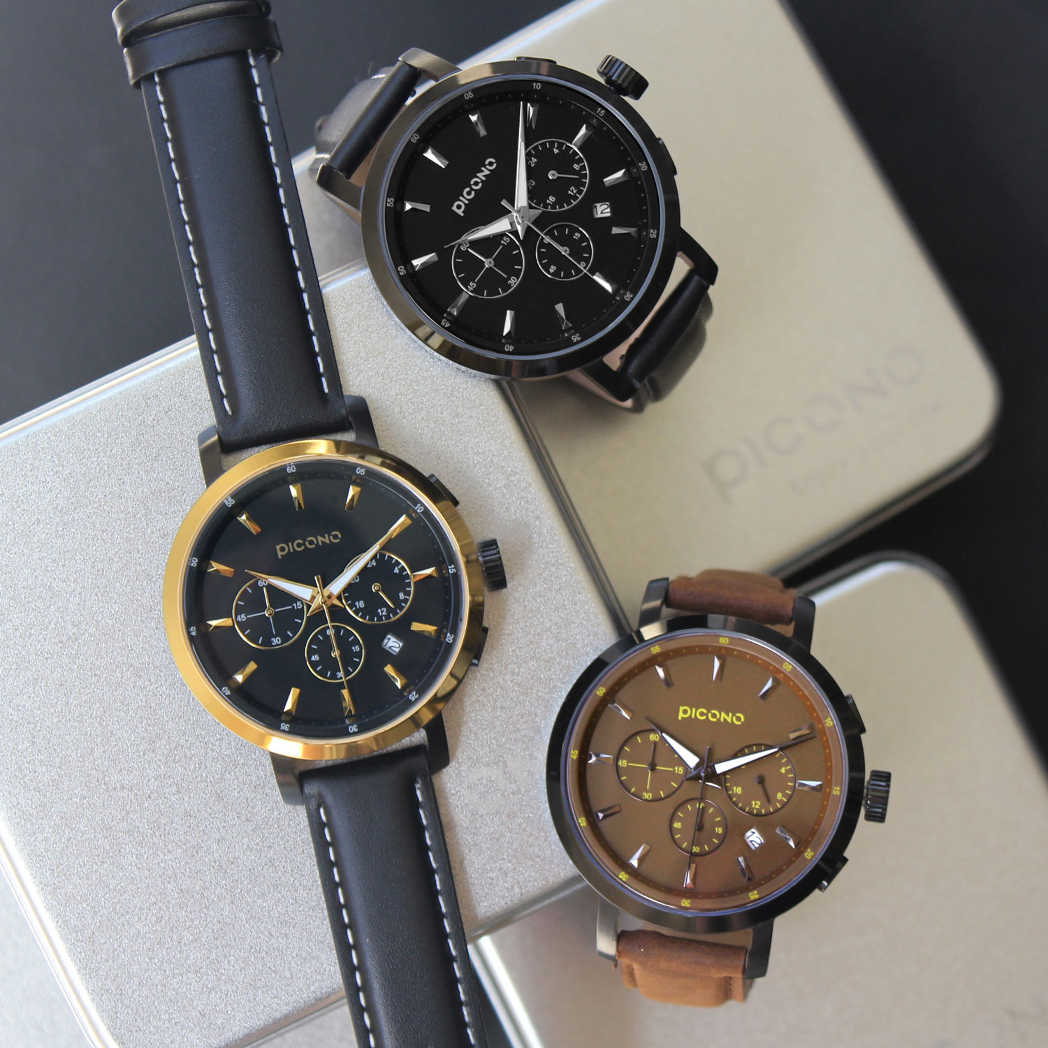 45mm大錶面真三眼D-Time系列有著霸氣的外表與扎實的重量,全錶殼均已不鏽鋼材質製造,錶帶選用真皮錶帶和進口日本機芯,男性配戴襯托自我獨特魅力,女性配戴展現帥氣個性的一面