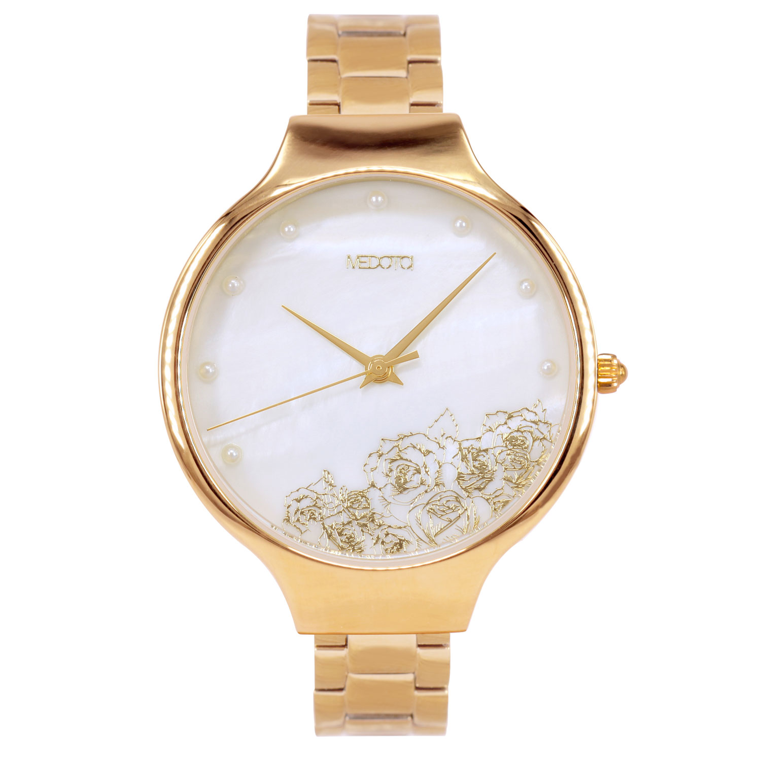 Elegant Glitter 玫瑰花貝殼面優雅女錶手錶 EG-11402 金色