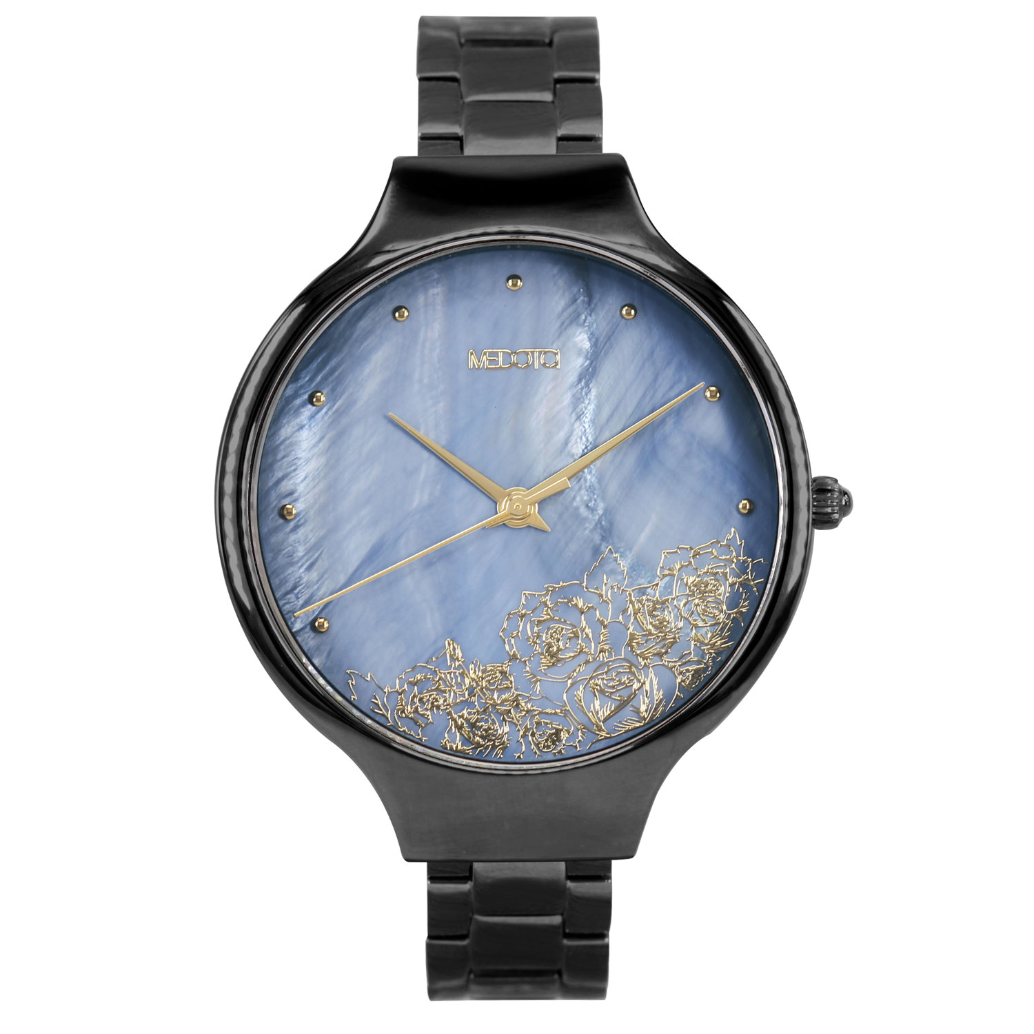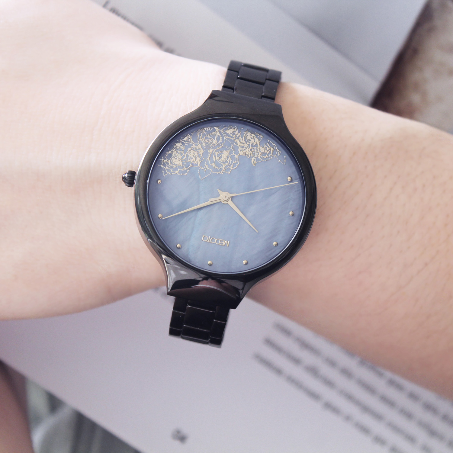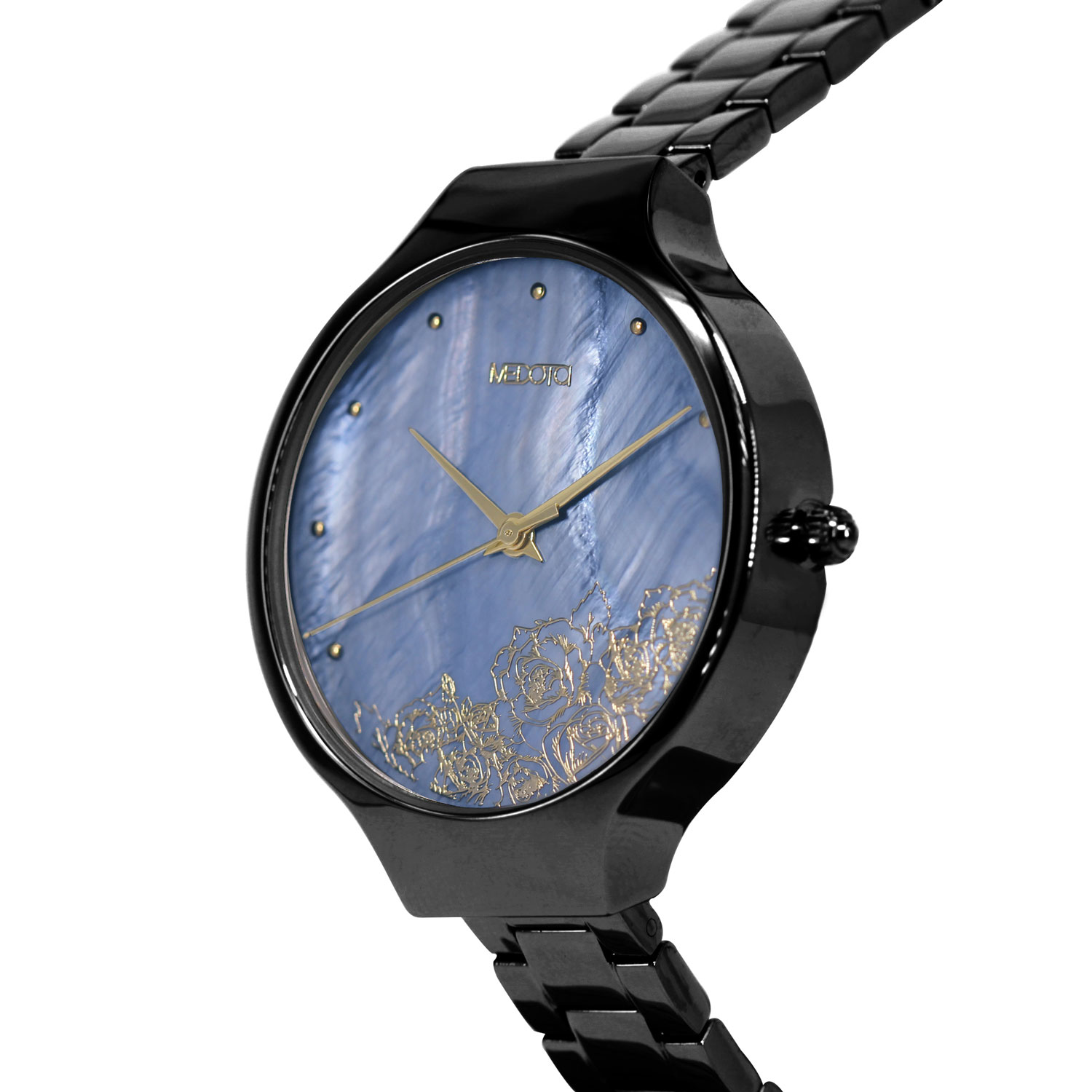 Elegant Glitter 玫瑰花貝殼面優雅女錶手錶 EG-11403 黑色